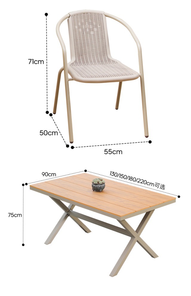 • 로크 의자 4개 + 150*90 대형 알루미늄 판자 롱 테이블
