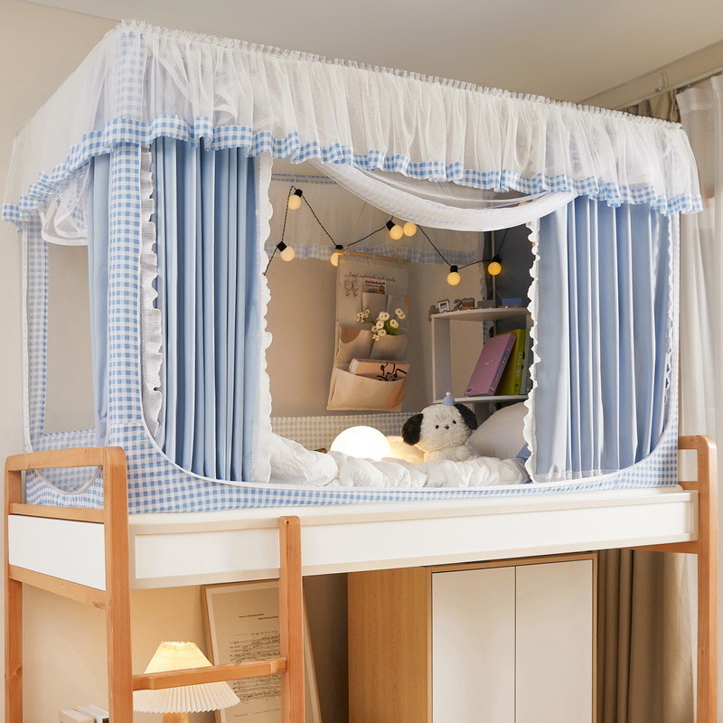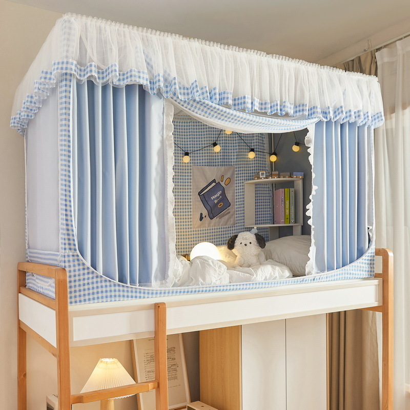 학생 기숙사 모기장, 기숙사 필수 침대 커튼, 블랙아웃 천, 상단 및 하단 침대, 3개의 도어, 스탠드가 있는 일체형 침대 커튼