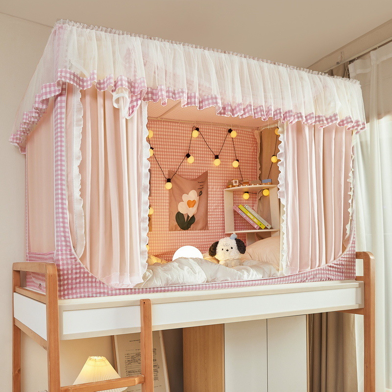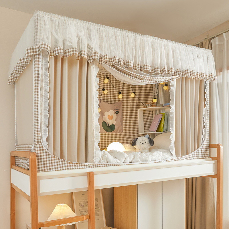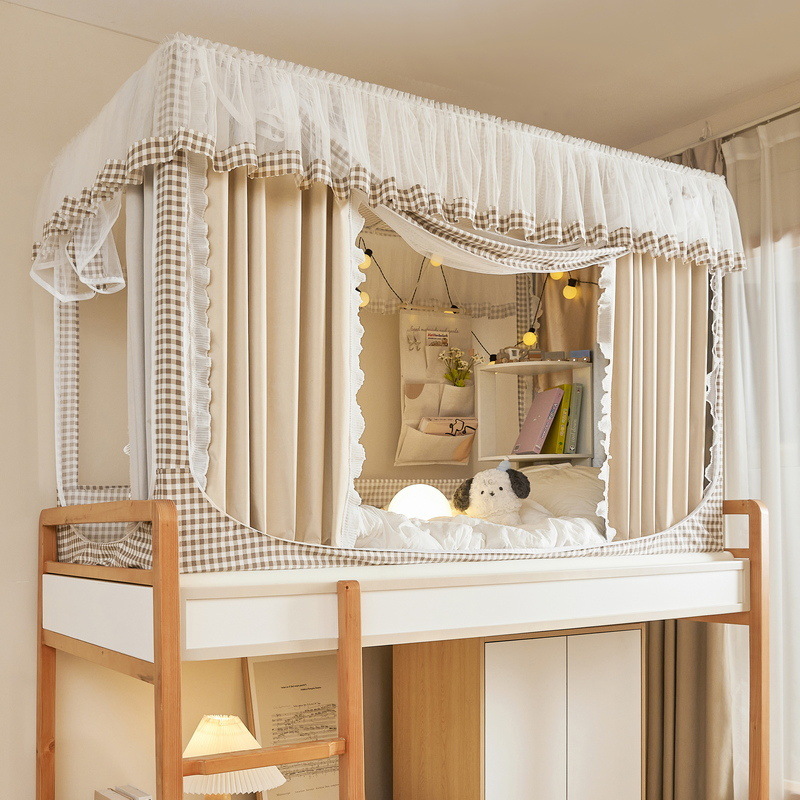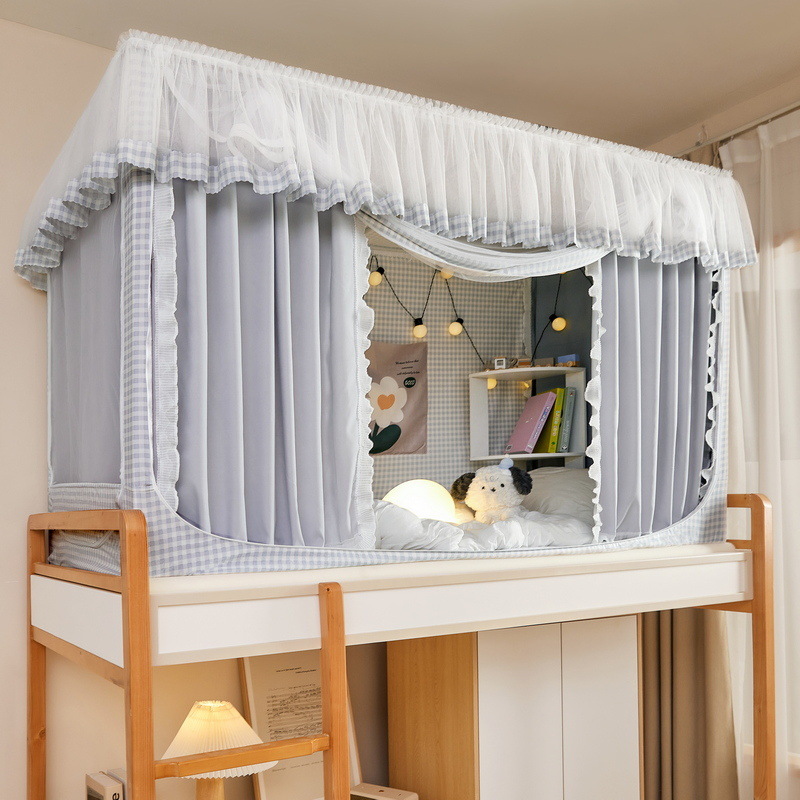 학생 기숙사 모기장, 기숙사 필수 침대 커튼, 블랙아웃 천, 상단 및 하단 침대, 3개의 도어, 스탠드가 있는 일체형 침대 커튼스토어 가기