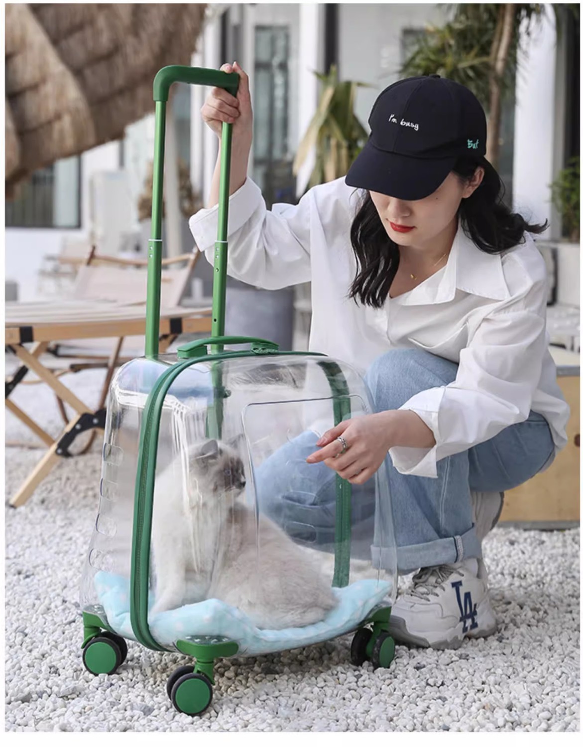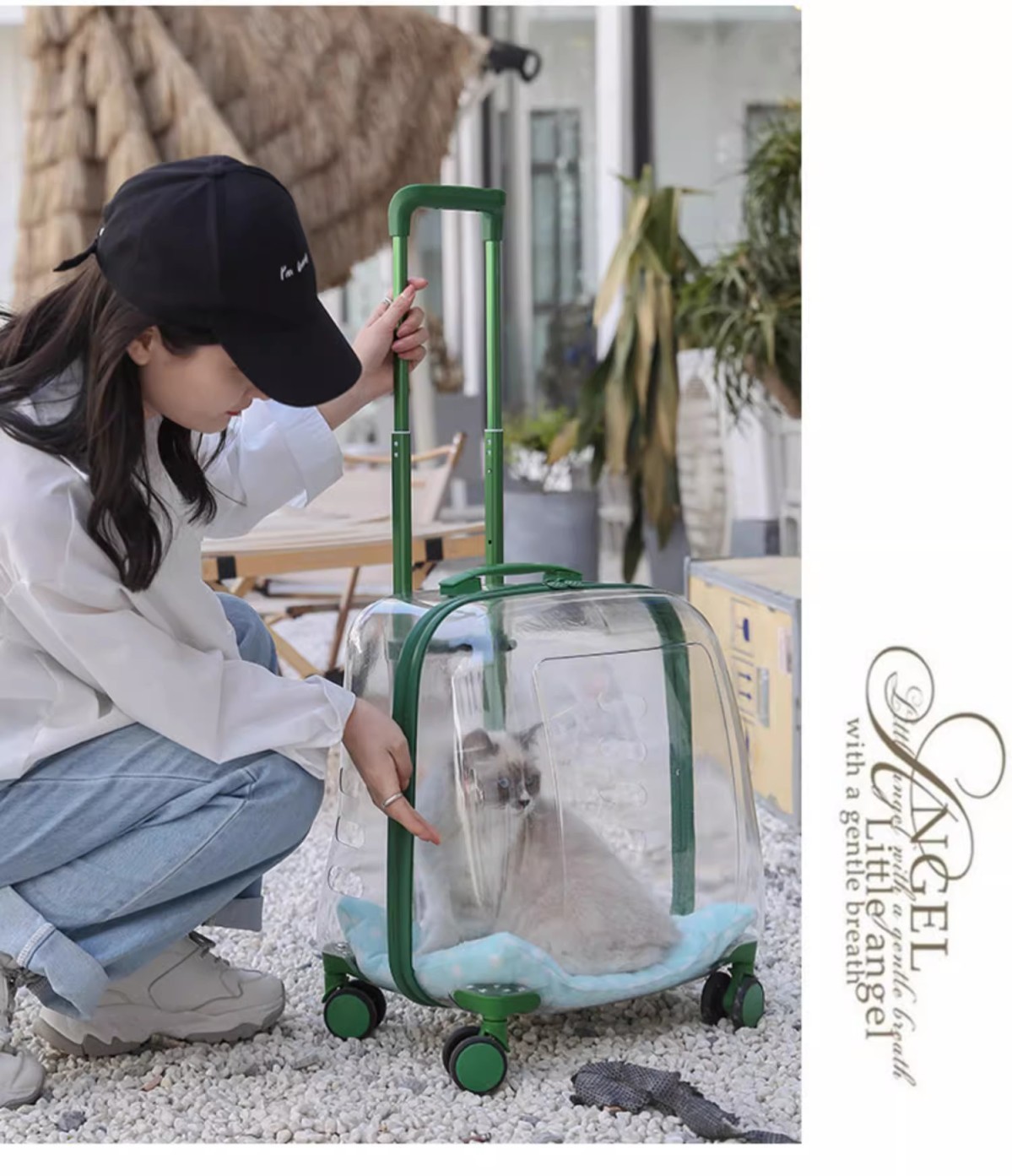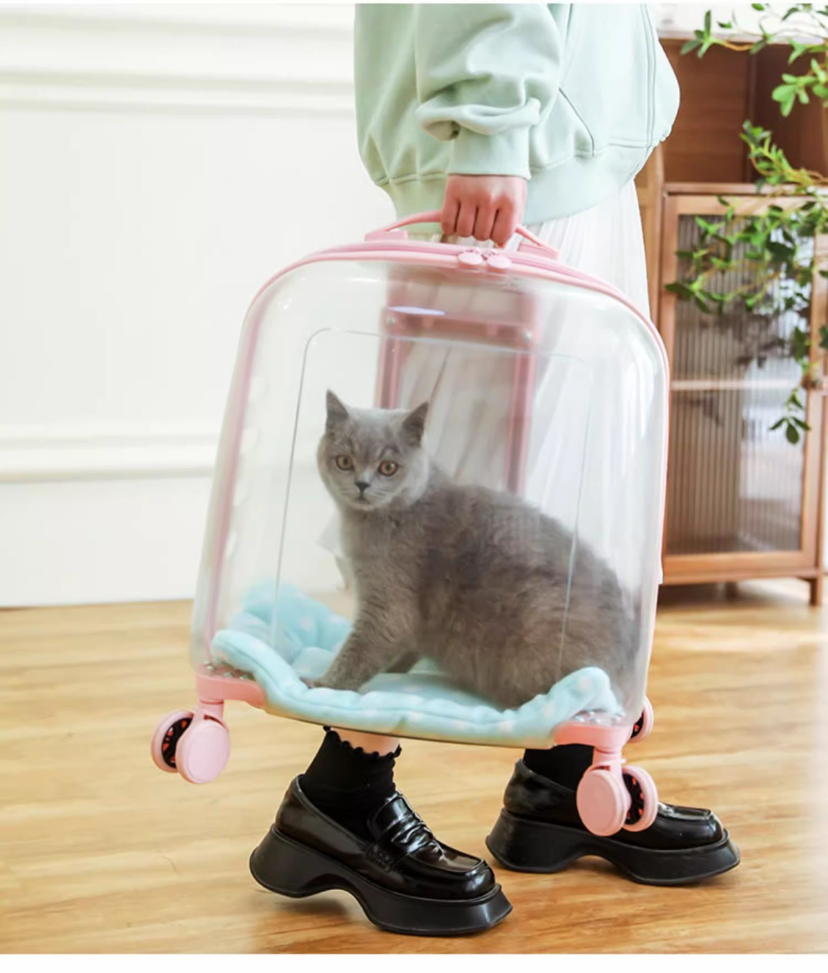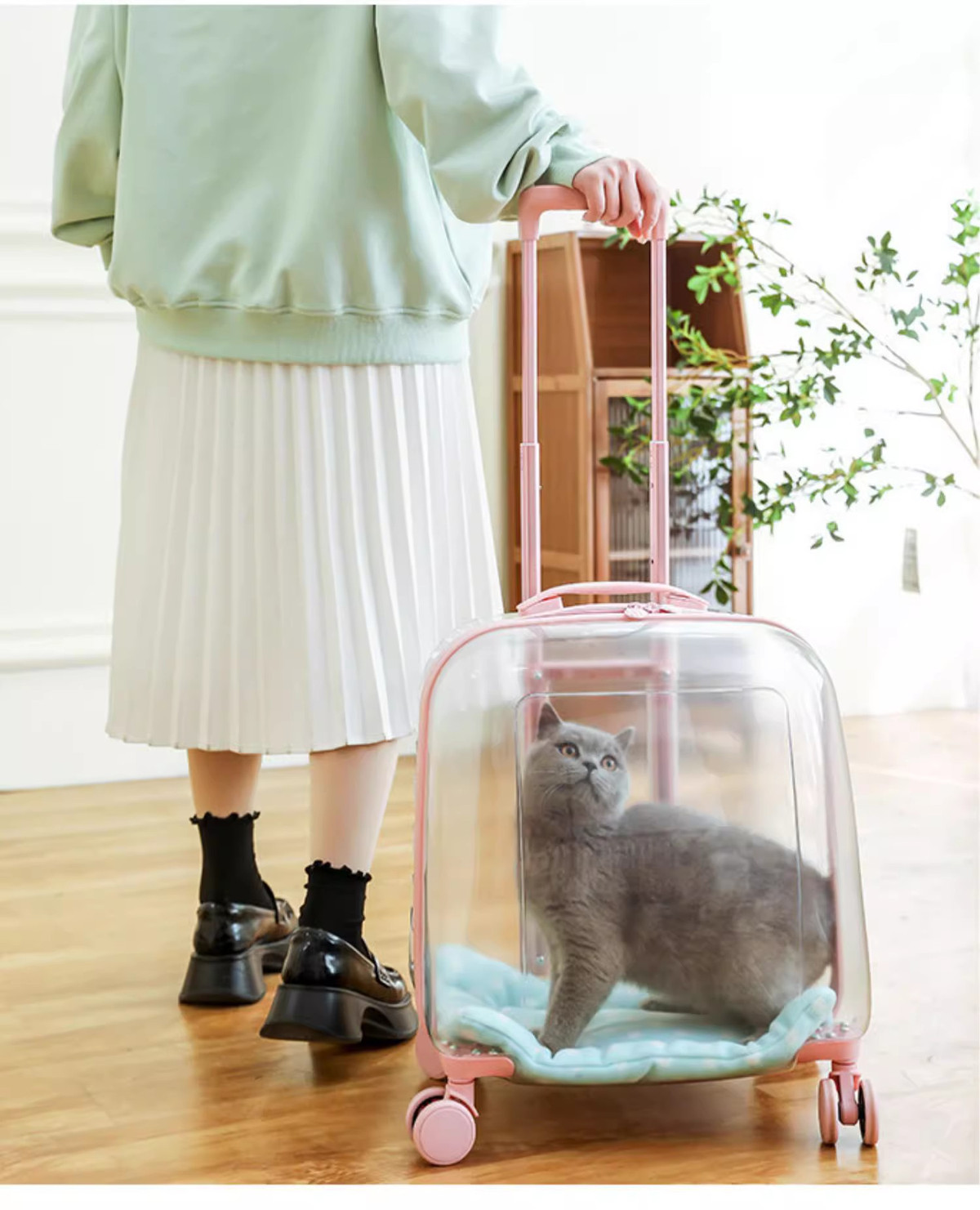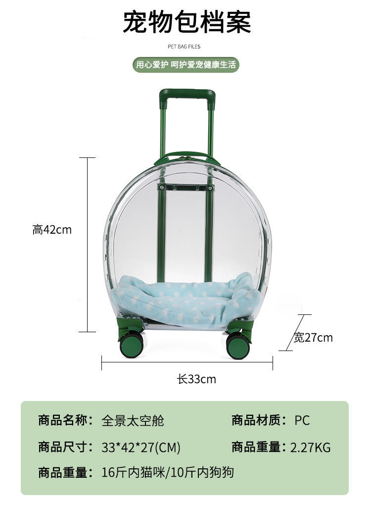 애완 동물 용품 야외 경량 유모차 고양이 트롤리 케이스 누출 방지 고양이 휴대용 대형 가방 투명 우주 캡슐