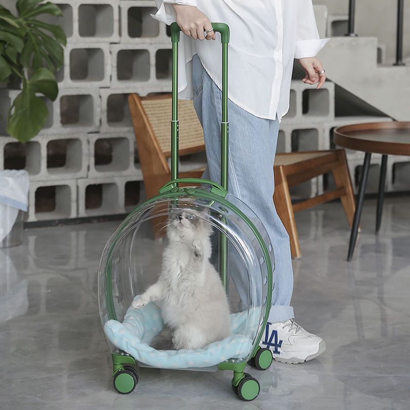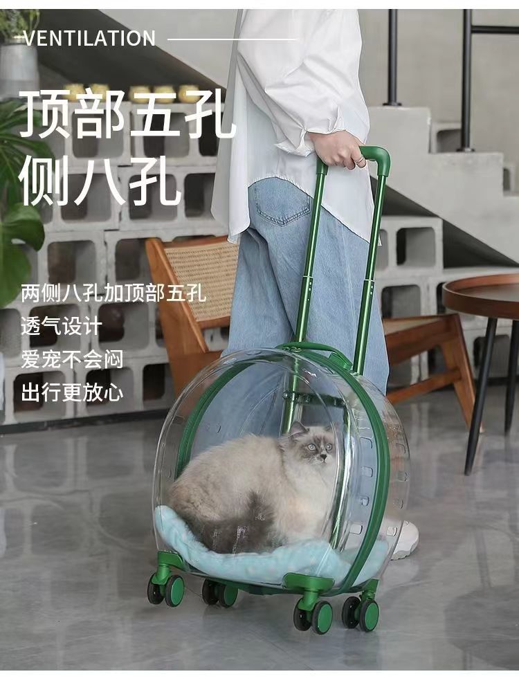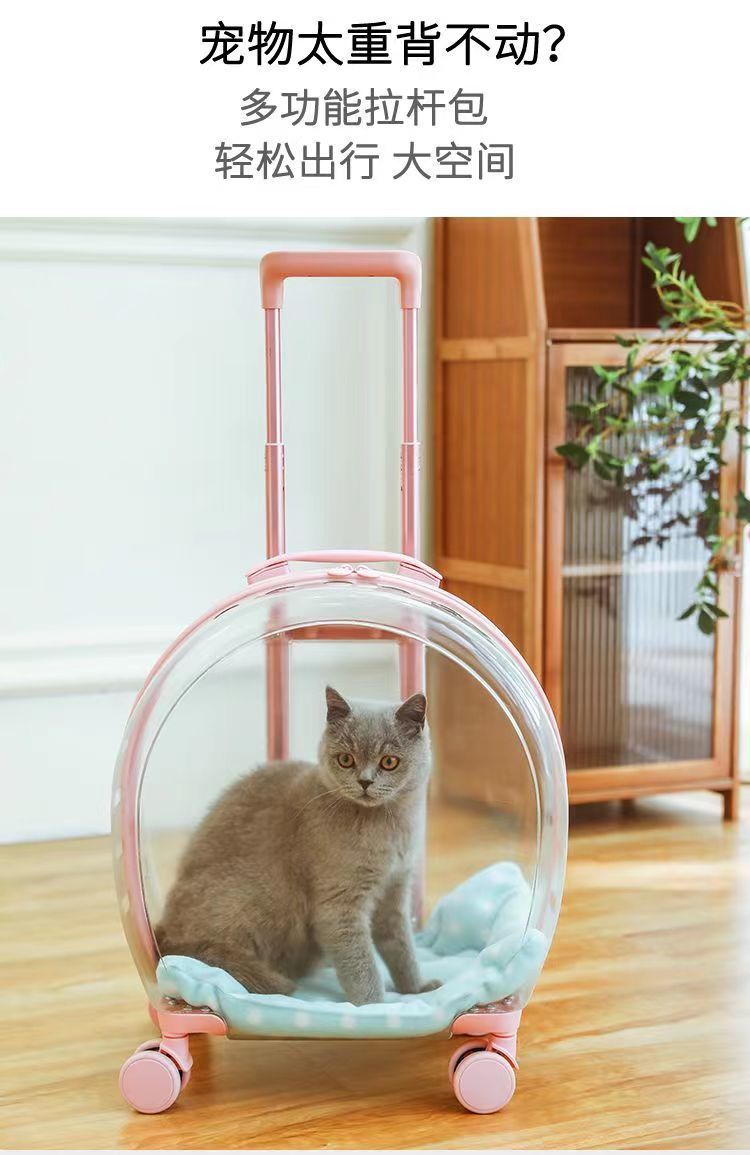 애완 동물 용품 야외 경량 유모차 고양이 트롤리 케이스 누출 방지 고양이 휴대용 대형 가방 투명 우주 캡슐스토어 가기