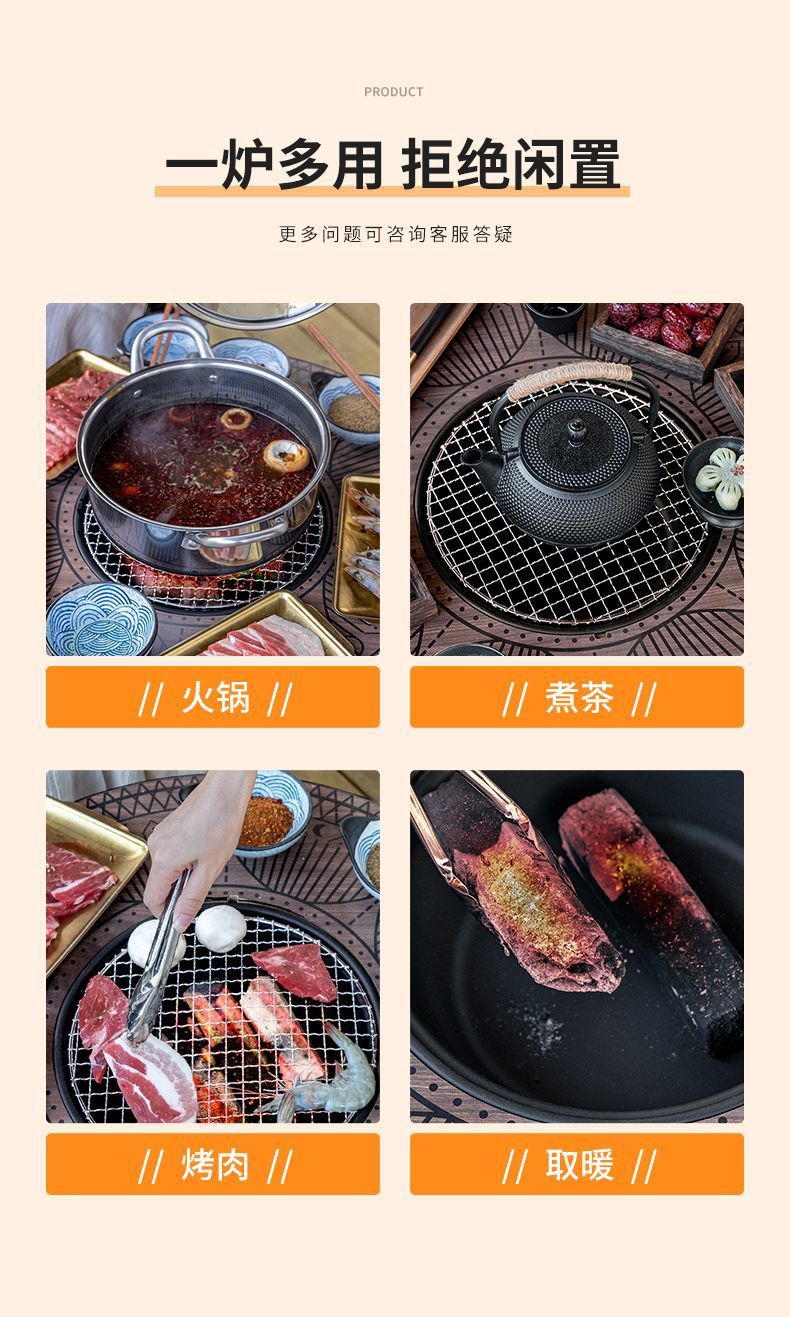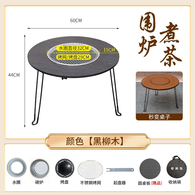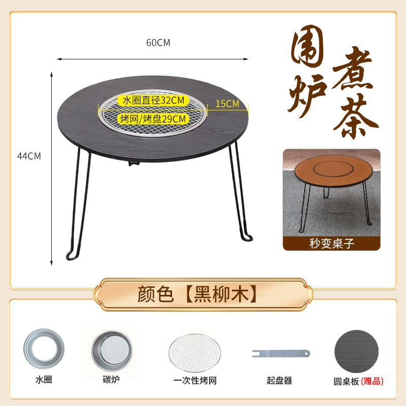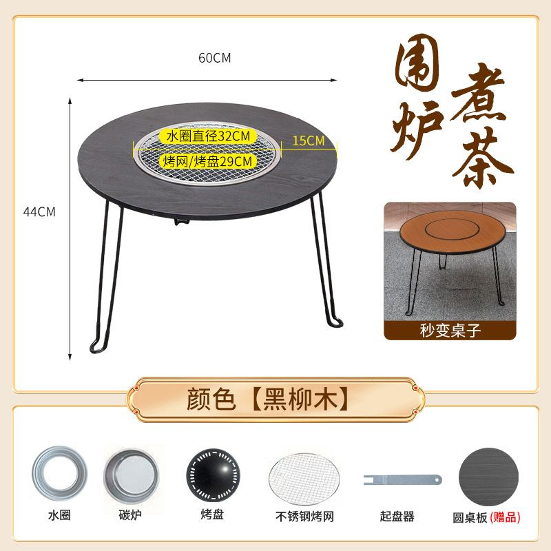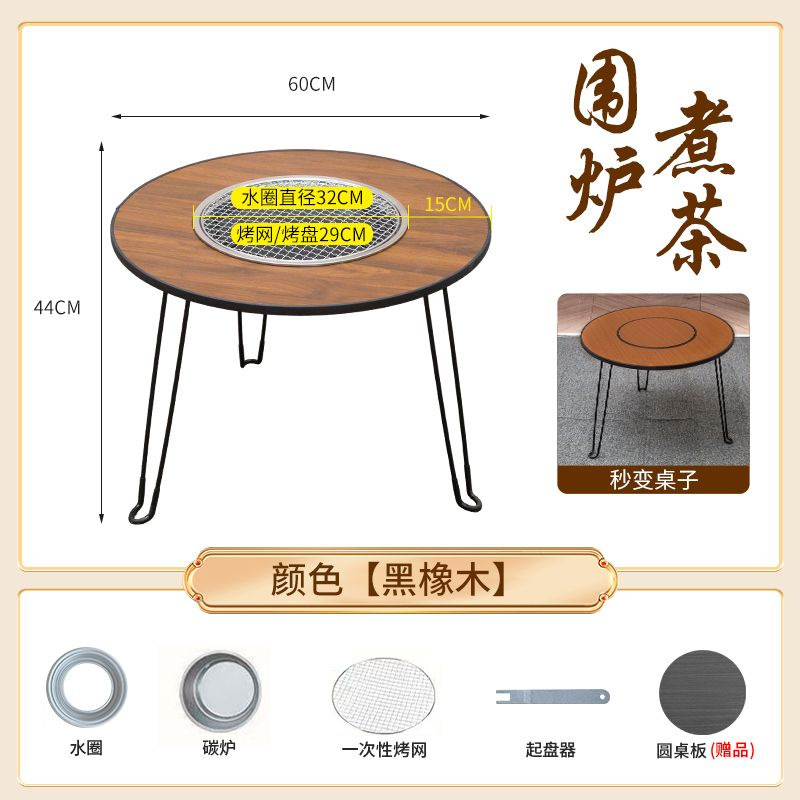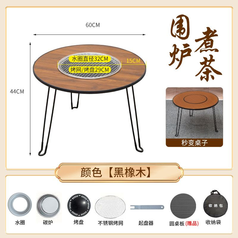• 직경 60 높이 45 패키지 3 (확대된 탄소 스토브 + 스테인레스 스틸 그릴 + 베이킹 팬 + 리프터 + 원형 테이블 커버) 블랙 오크