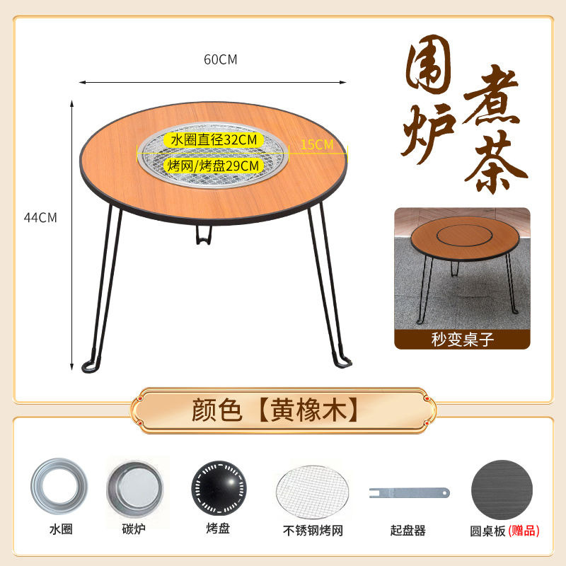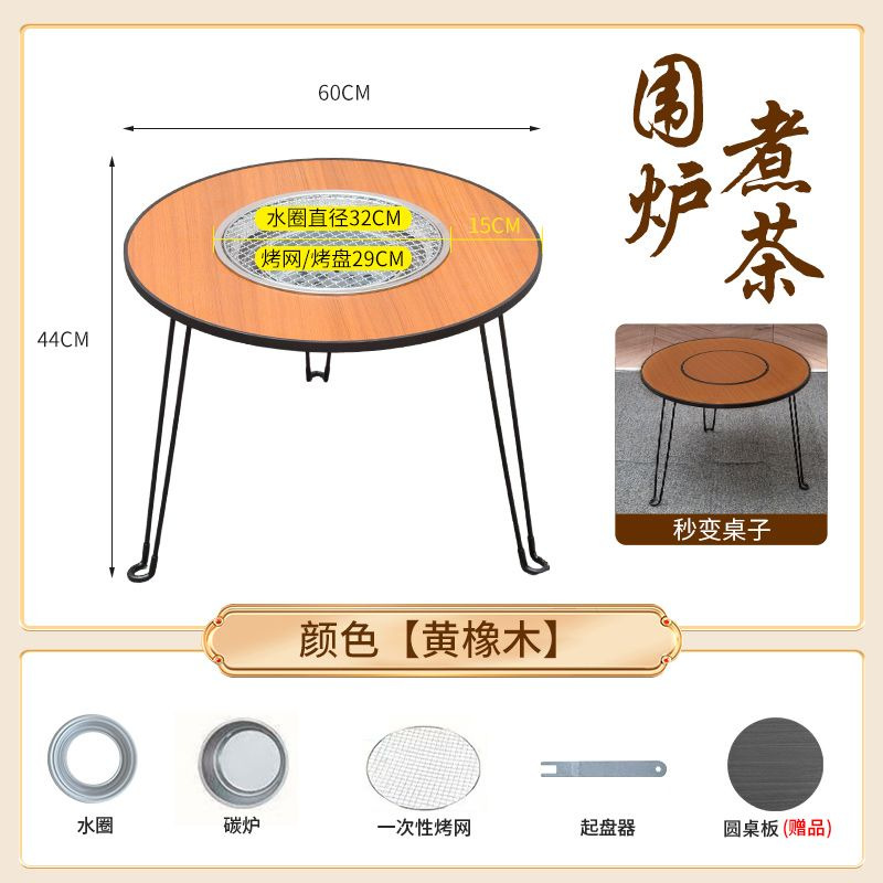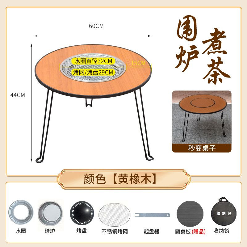 • 직경 60 높이 45 패키지 2 (대형 숯불 난로 + 스테인레스 스틸 그릴 + 플레이트 리프터 + 원형 테이블 커버) 옐로우 오크 색상