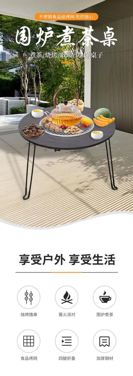 야외 차 테이블, 야외 바베큐 테이블, 가정용 무연 바베큐 휴대용 접이식 바베큐 테이블, 전골 테이블