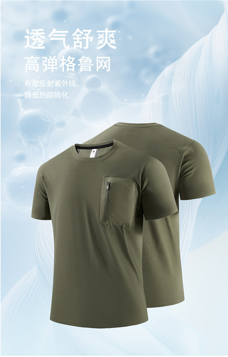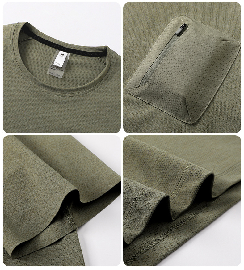 Niaojia Ping 남성용 얇은 반팔 티셔츠, 심리스 주름 포켓, 남성용 대형 탑, 시원하고 통기성이 뛰어나며 속건성
