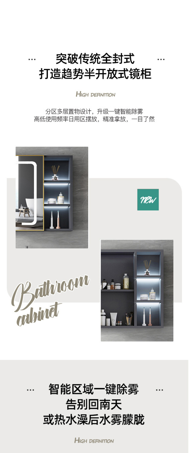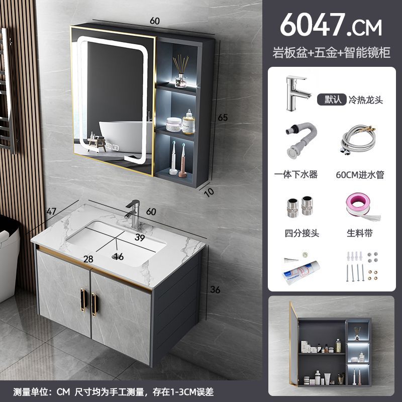 • 스톤 그레이 60CM 슬레이트 세면대 캐비닛 + 스마트 거울 캐비닛