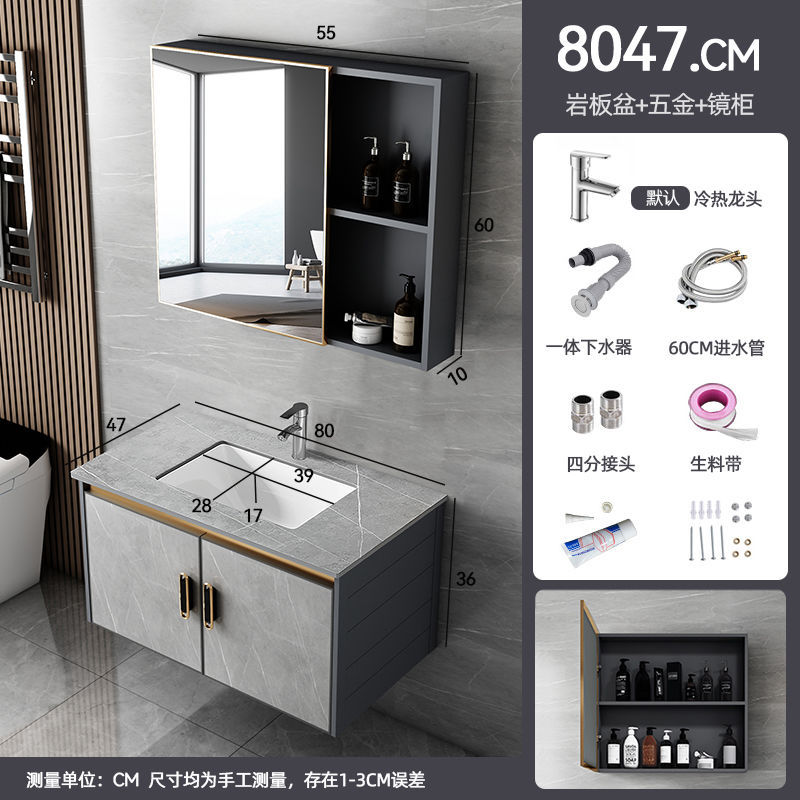 • 스톤 그레이 80CM 슬레이트 세면대 캐비닛 + 수납 거울 캐비닛