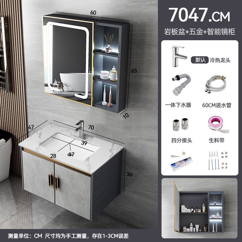 • 스톤 그레이 70CM 슬레이트 세면대 캐비닛 + 스마트 거울 캐비닛