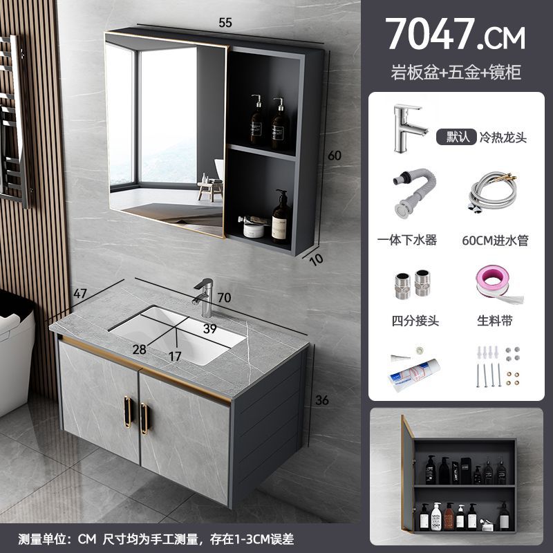 • 스톤 그레이 70CM 슬레이트 세면대 캐비닛 + 수납 거울 캐비닛