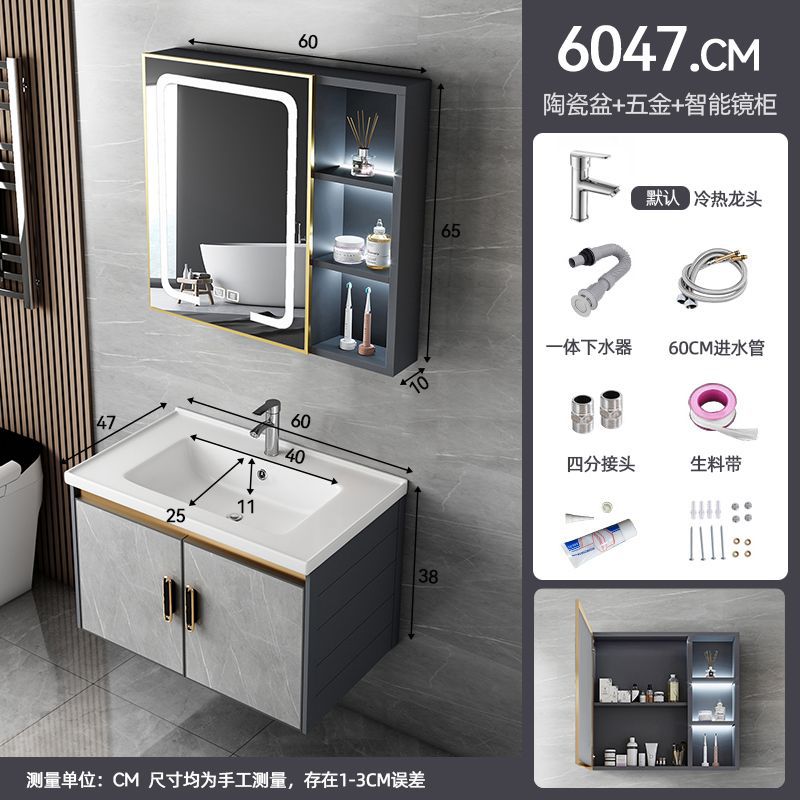• 스톤 그레이 60CM 세라믹 세면대 캐비닛 + 스마트 거울 캐비닛