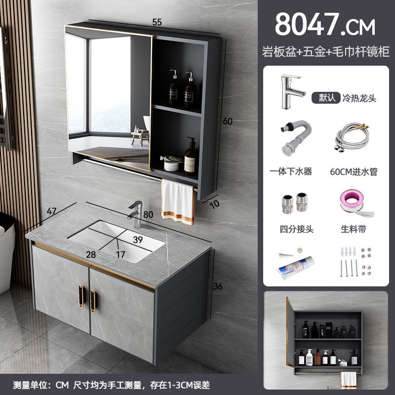 • 스톤 그레이 80CM 슬레이트 세면대 캐비닛 + 수건 걸이 거울 캐비닛
