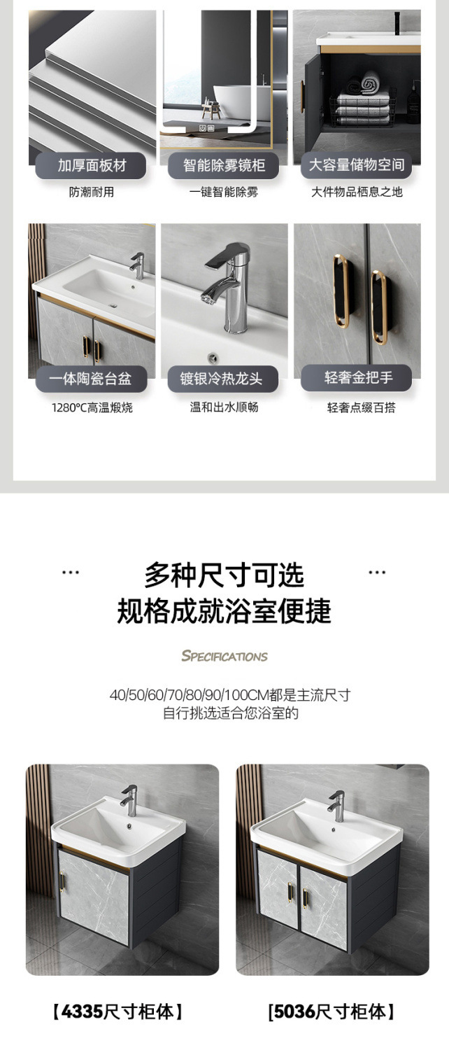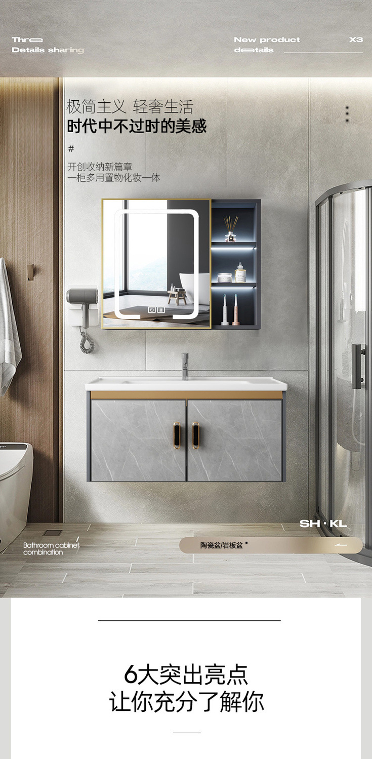 스페이스 알루미늄 슬레이트 욕실 캐비닛 조합 소형 욕실 세면대 욕실 일체형 세면대스토어 가기