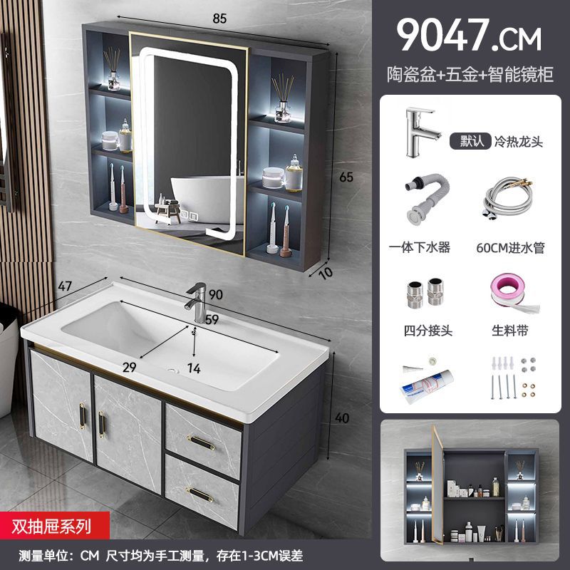 • 스톤 그레이 9047 세라믹 세면대 캐비닛(서랍 + 스마트 거울 캐비닛 포함)