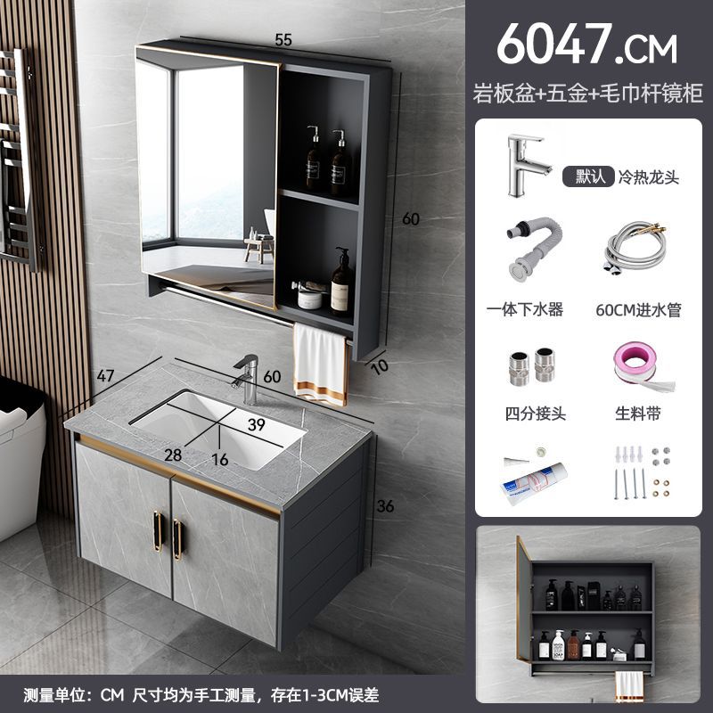 • 스톤 그레이 60CM 슬레이트 세면대 캐비닛 + 수건 걸이 거울 캐비닛