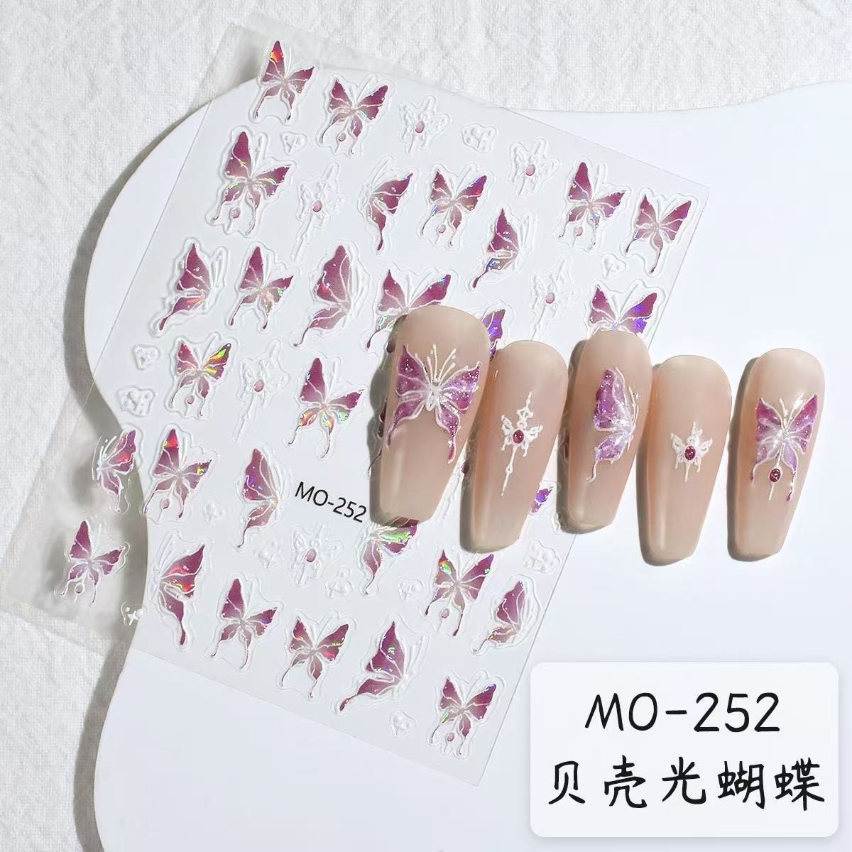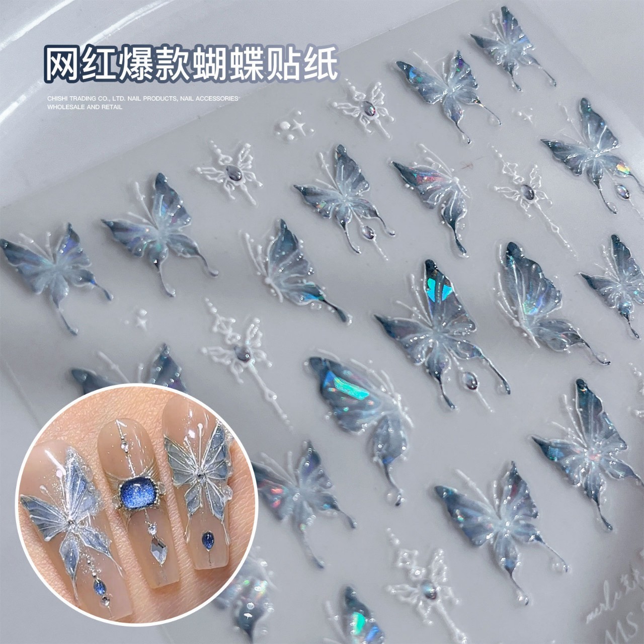 새로운 네일 아트 스티커 쉘 라이트 나비 스티커 양각 오로라 심포니 3 차원 네일 아트 나비 스티커 액세서리스토어 가기