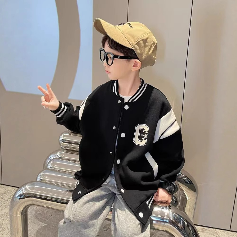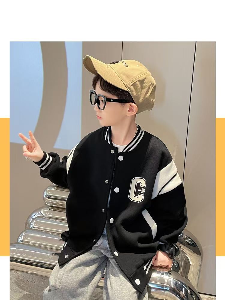 남자 야구 유니폼 유행 2025 새로운 봄 의류 아동 봄 스타일 중대형 아동 코트 봄, 가을 스트리트 재킷 카디건