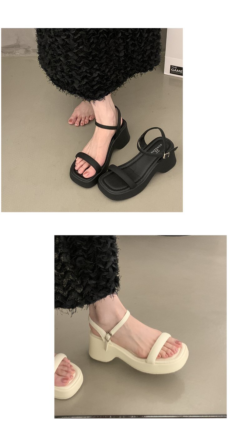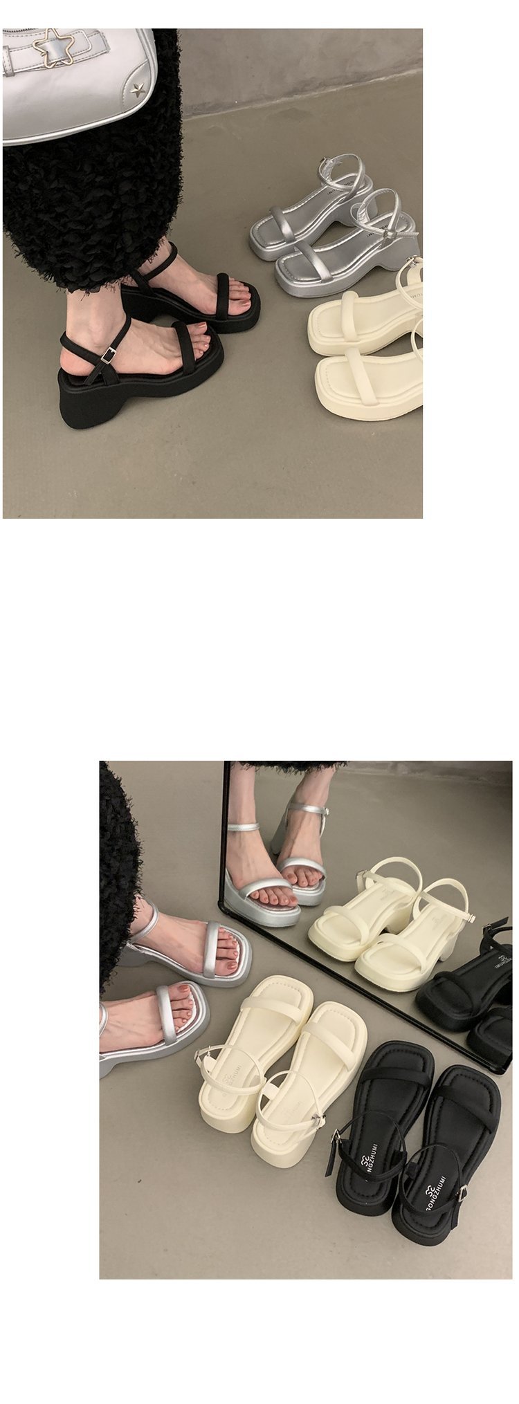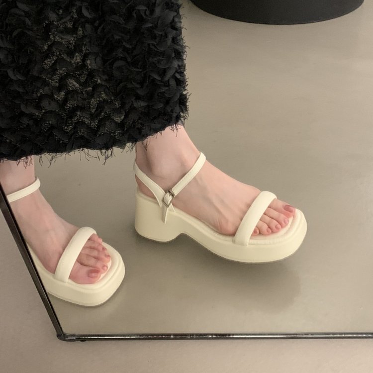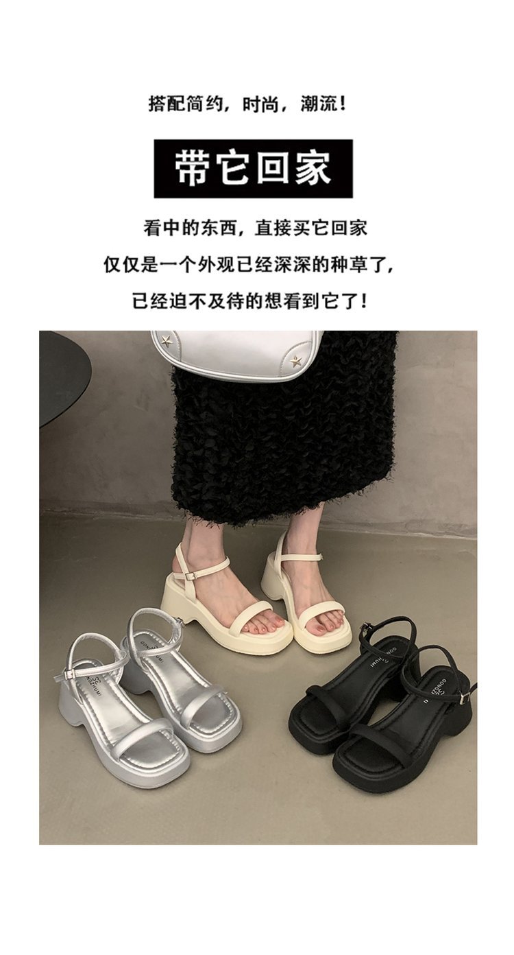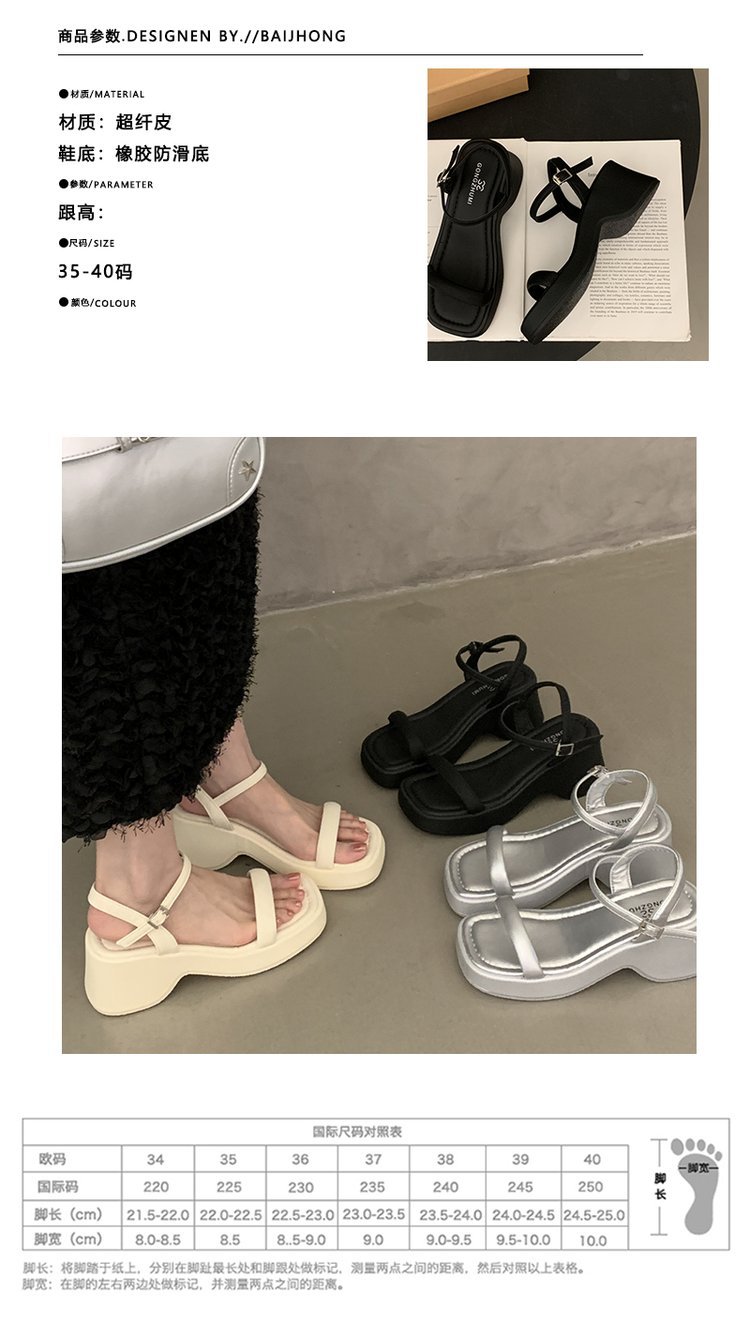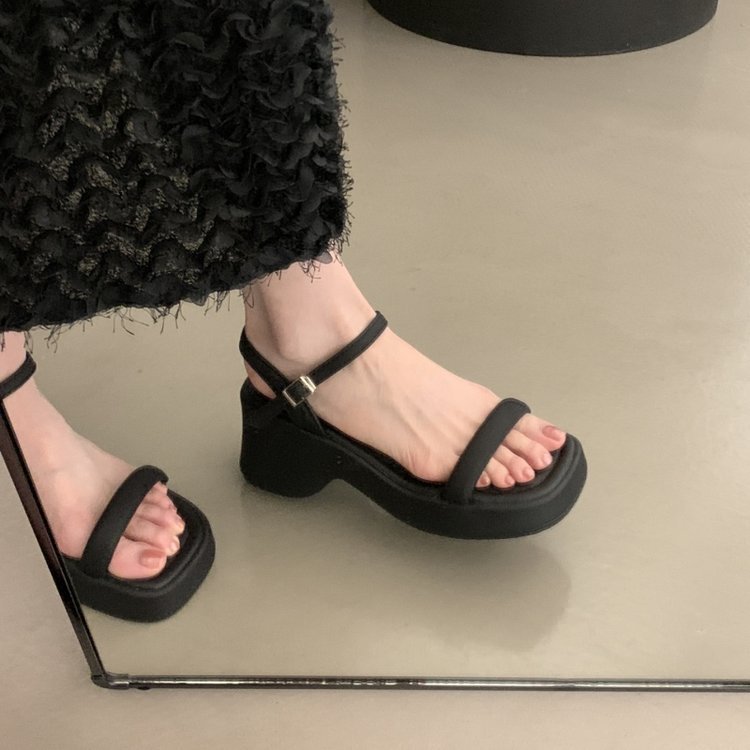 여성용 두꺼운 밑창 웨지 샌들 2025 스커트가있는 새로운 여름 겉옷 검은 색 하이힐 비치 로마 샌들스토어 가기