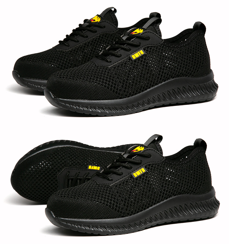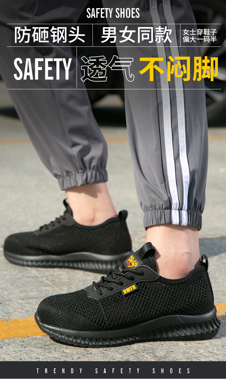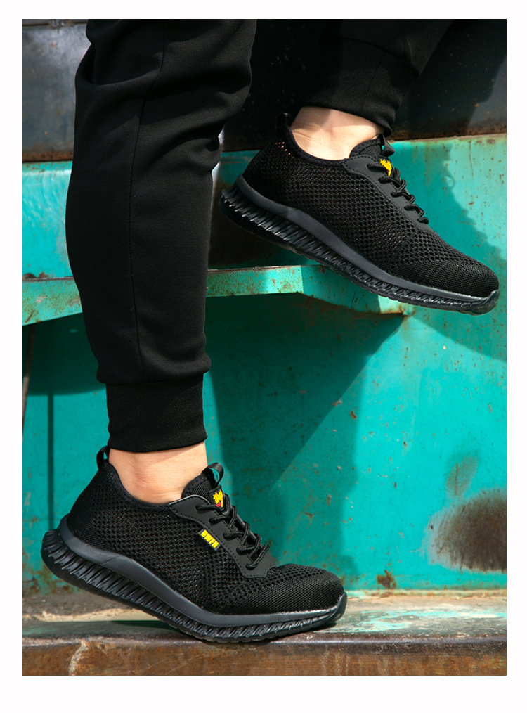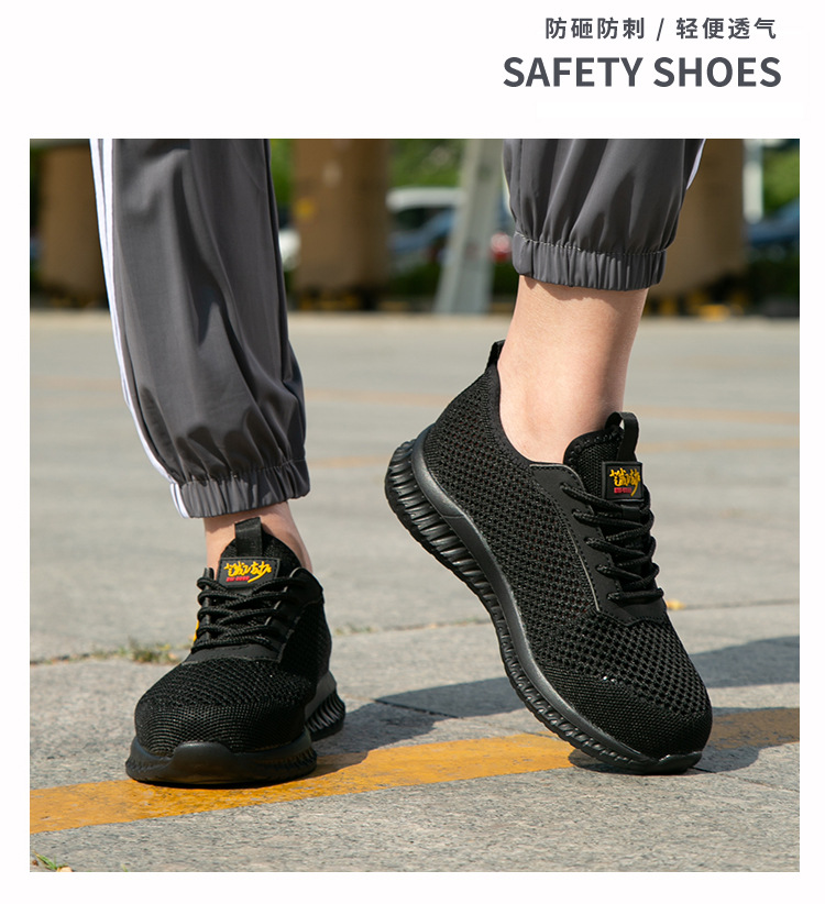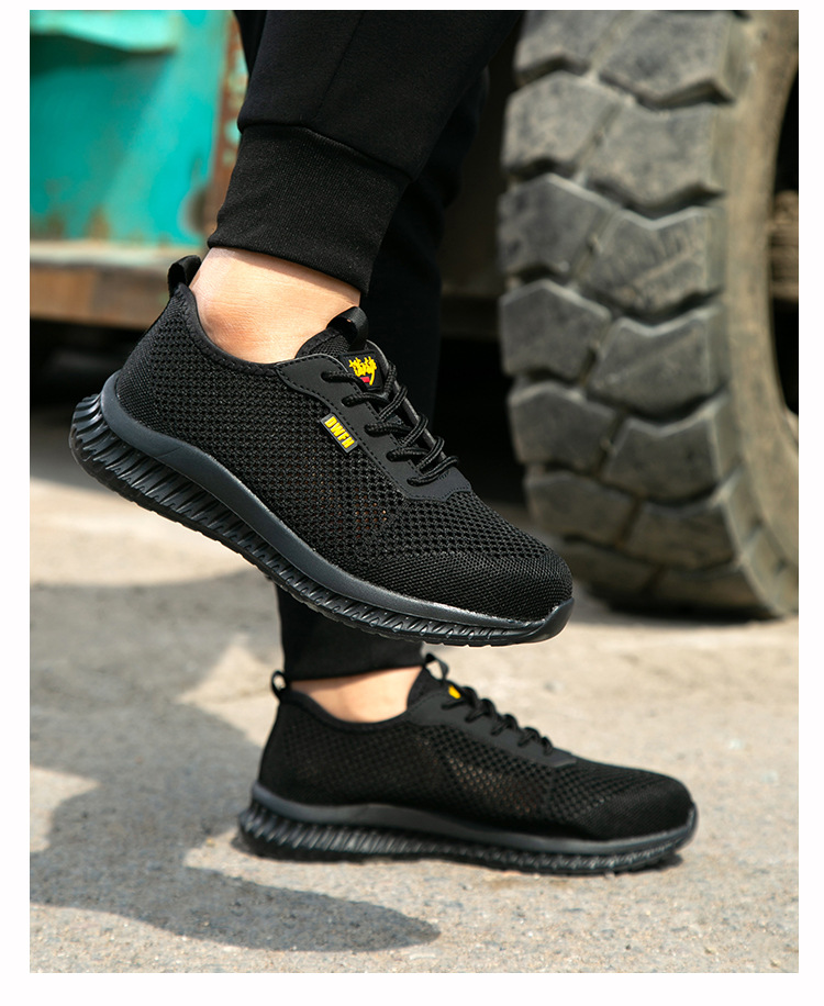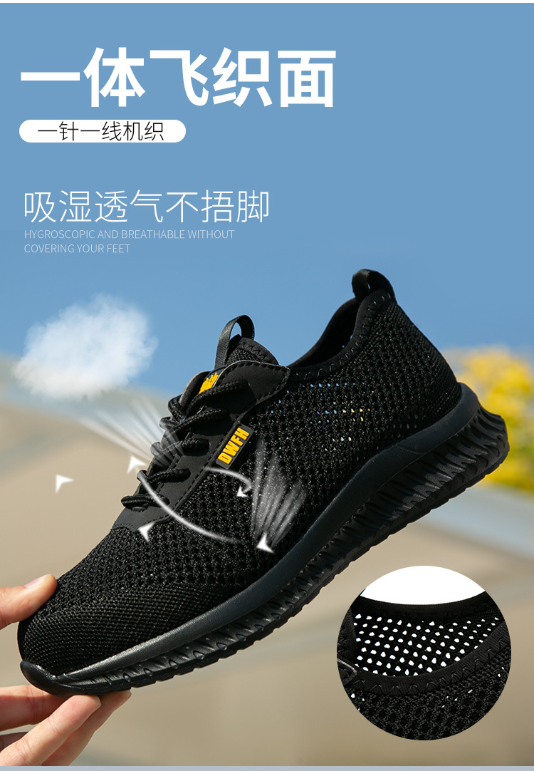 남성용 통기성 작업화, 여름용 가볍고 편안한 부드러운 밑창 보호 안전화, 여성용 충격 방지 및 펑크 방지 플라이 니트 작업화스토어 가기