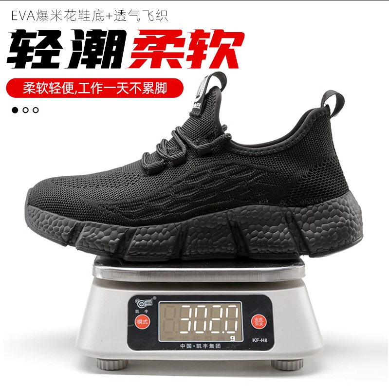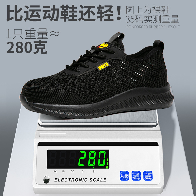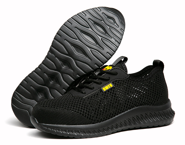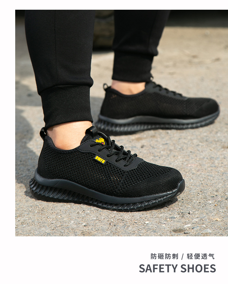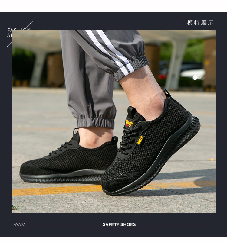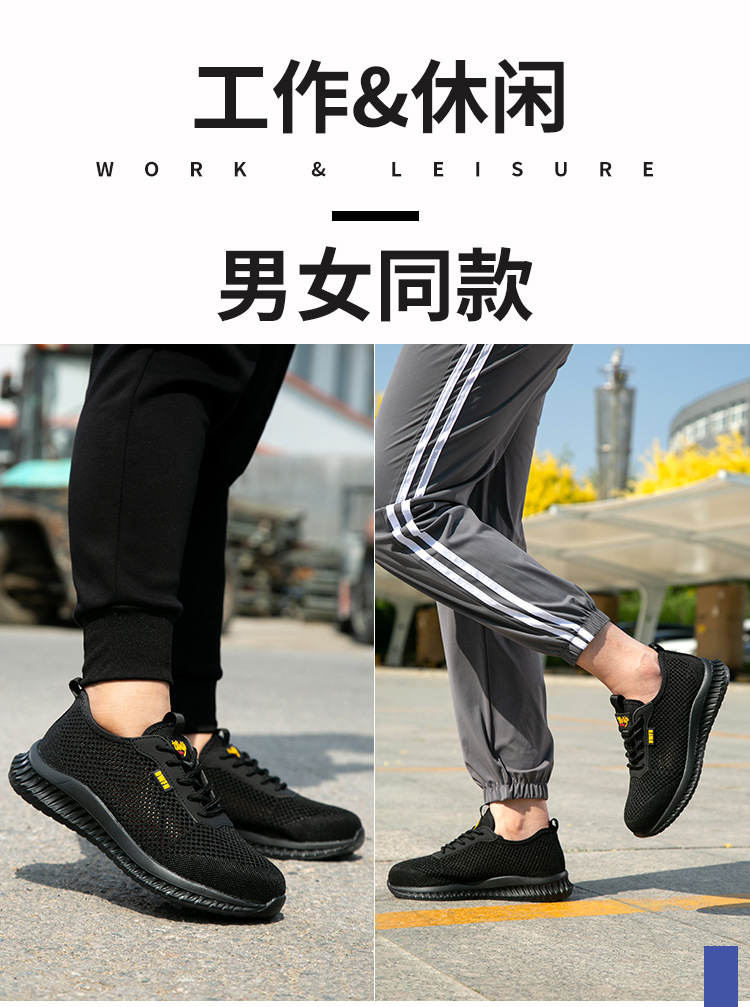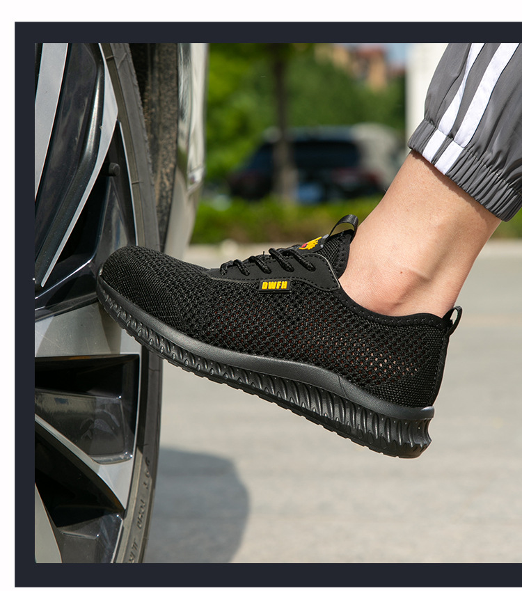 남성용 통기성 작업화, 여름용 가볍고 편안한 부드러운 밑창 보호 안전화, 여성용 충격 방지 및 펑크 방지 플라이 니트 작업화스토어 가기