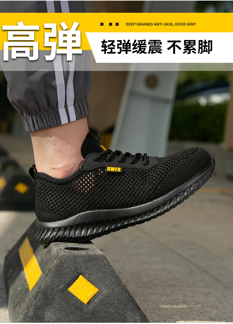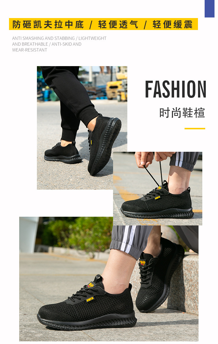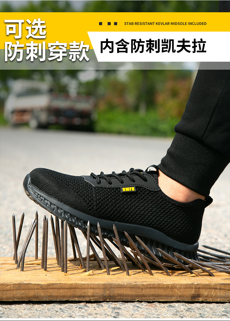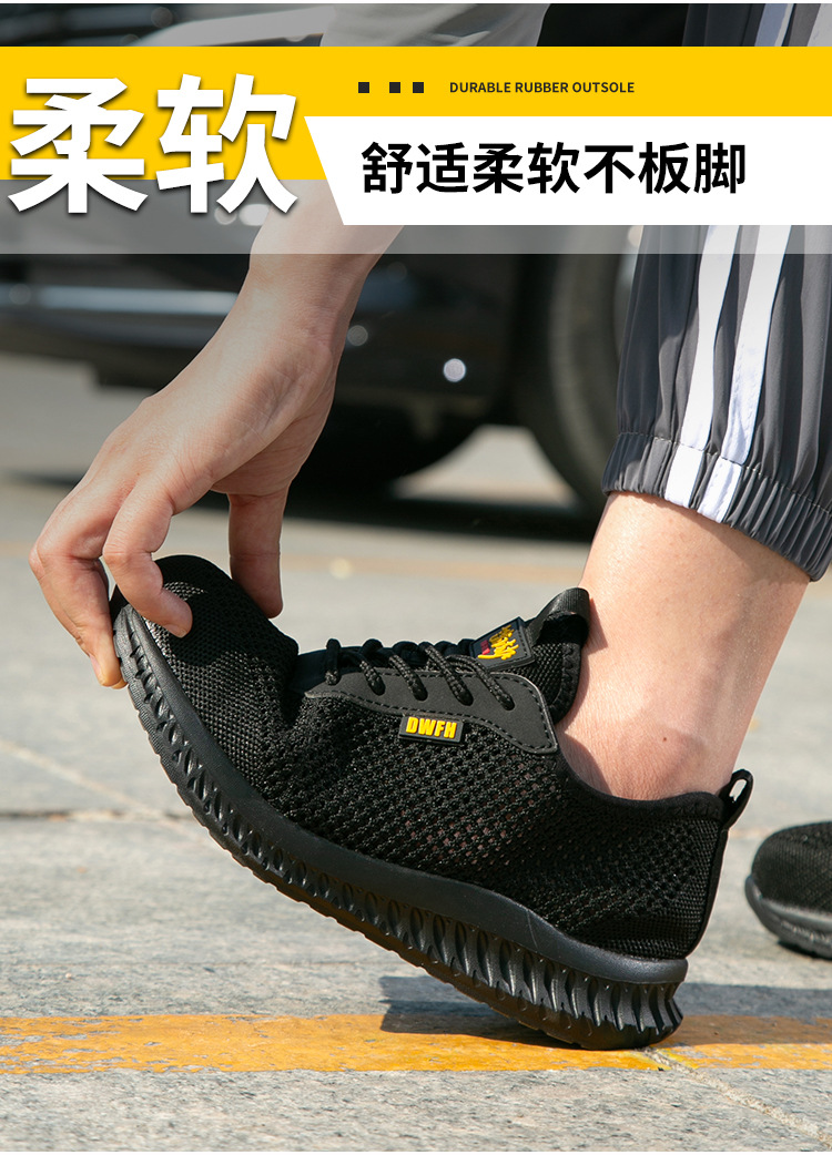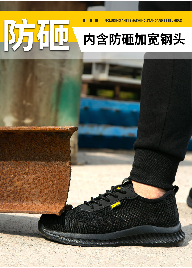 남성용 통기성 작업화, 여름용 가볍고 편안한 부드러운 밑창 보호 안전화, 여성용 충격 방지 및 펑크 방지 플라이 니트 작업화스토어 가기