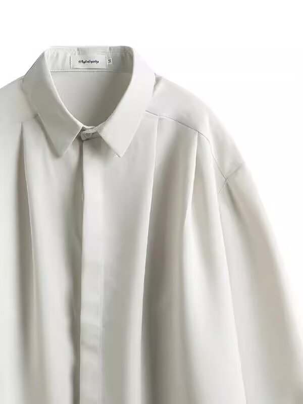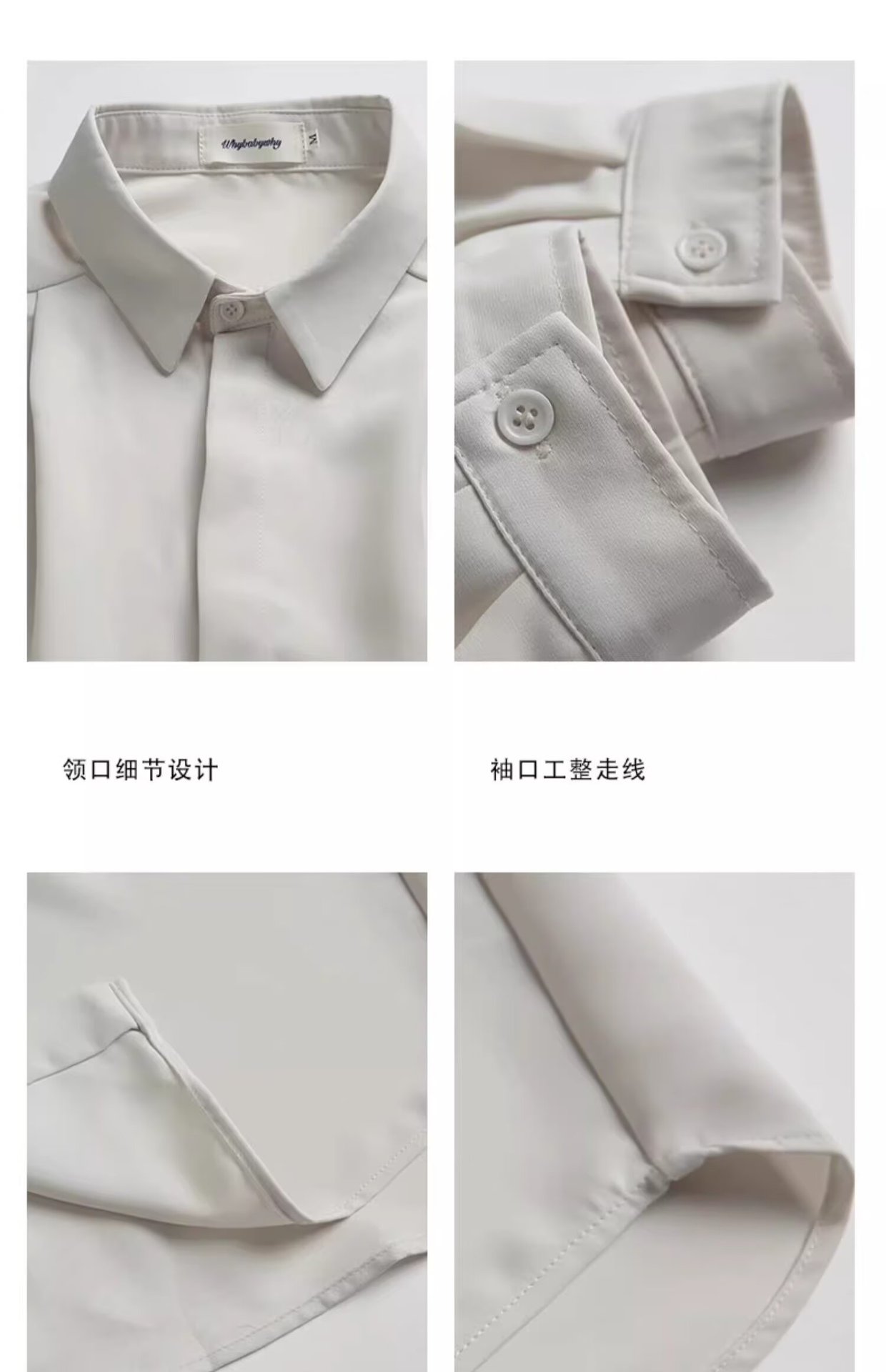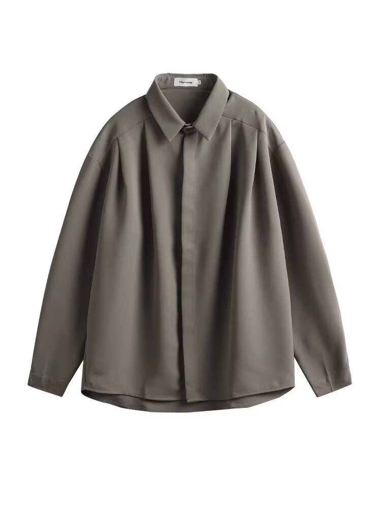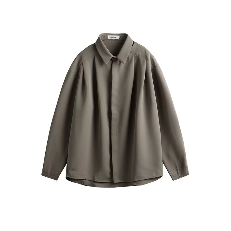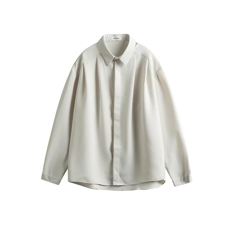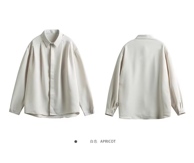 봄, 가을용 긴팔 남성용 솔리드 컬러 하이엔드 드레이프 탑, 루즈하고 트렌디한 노아이언 핸섬 셔츠 아우터스토어 가기