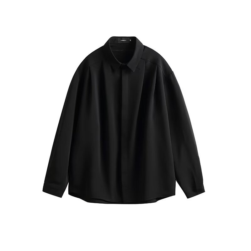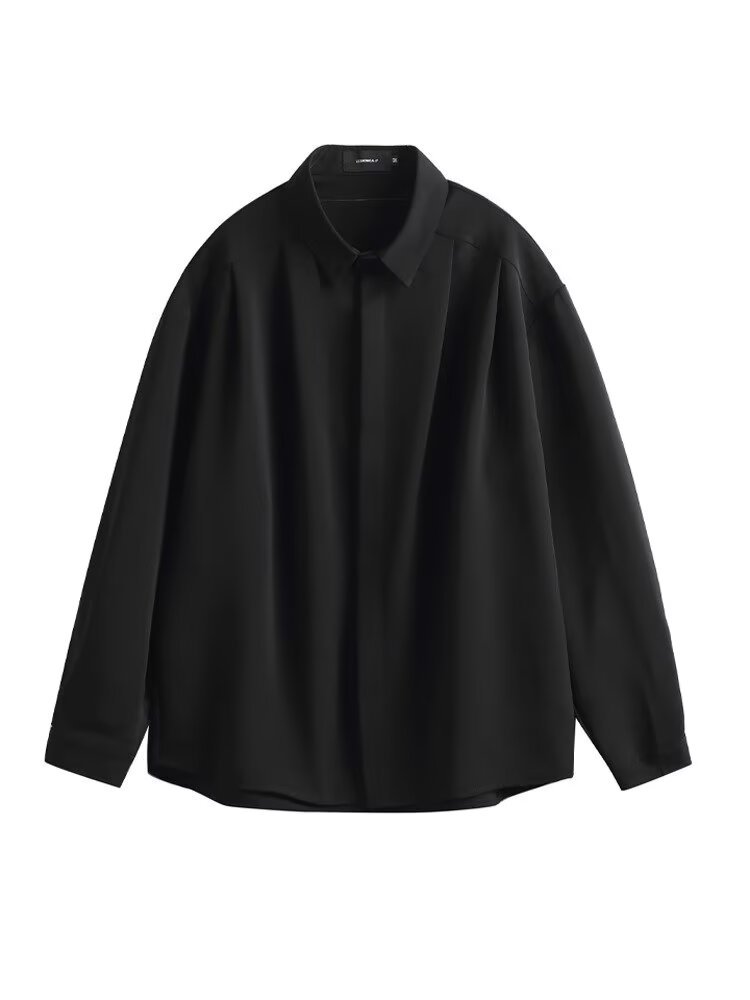봄, 가을용 긴팔 남성용 솔리드 컬러 하이엔드 드레이프 탑, 루즈하고 트렌디한 노아이언 핸섬 셔츠 아우터