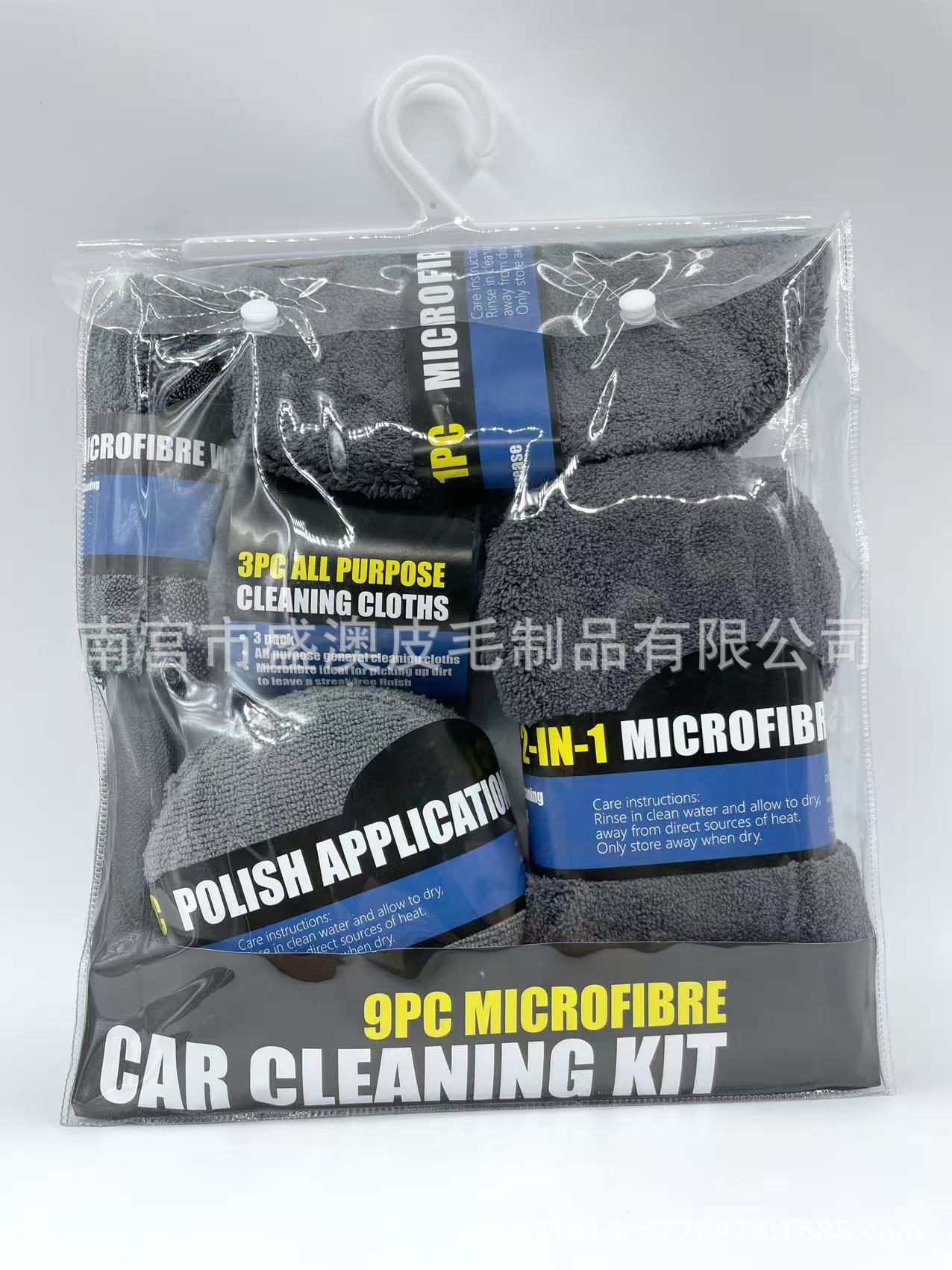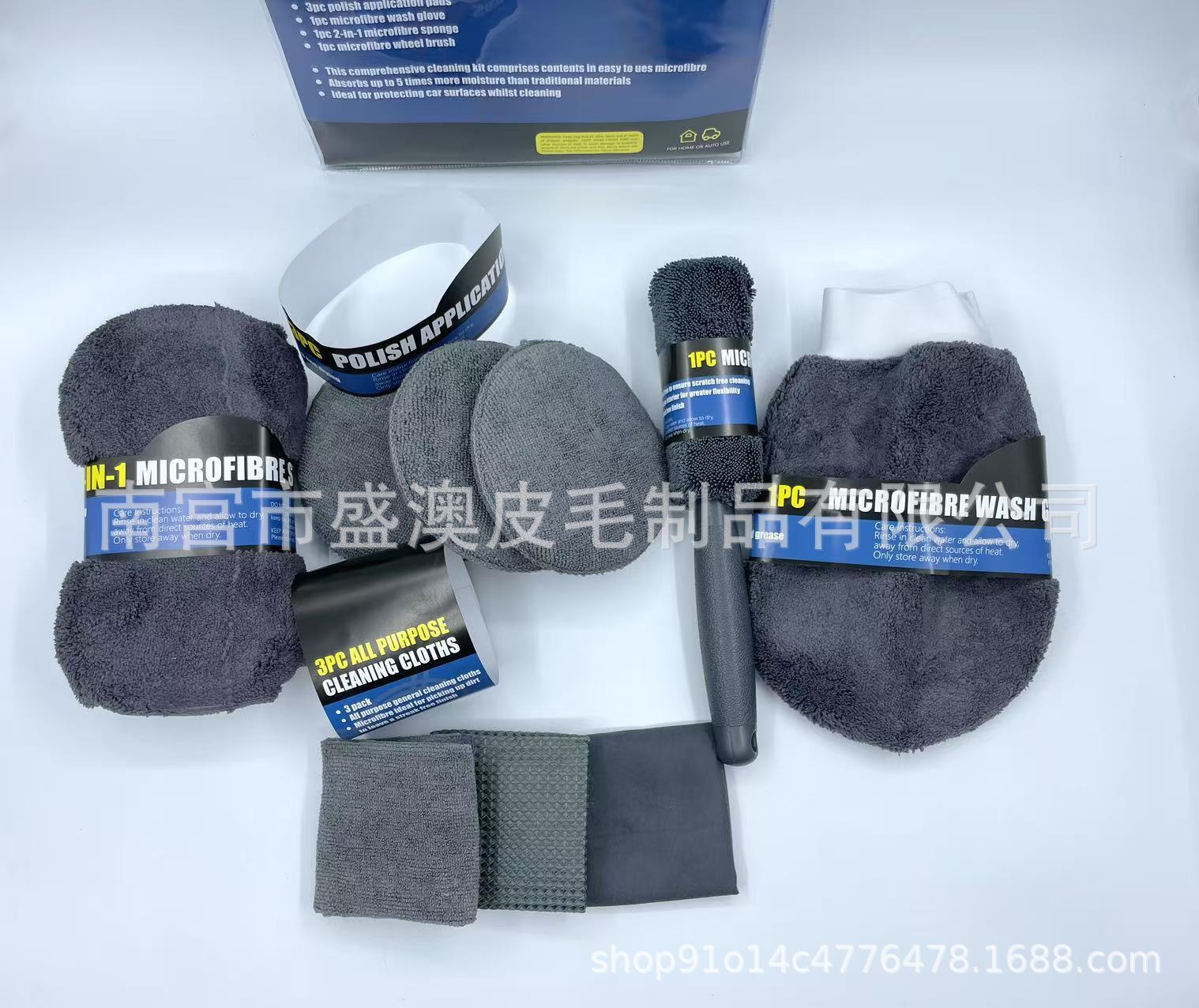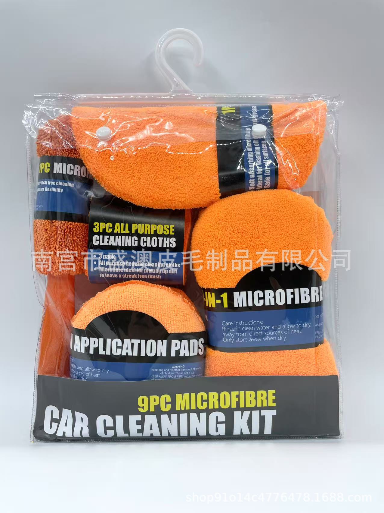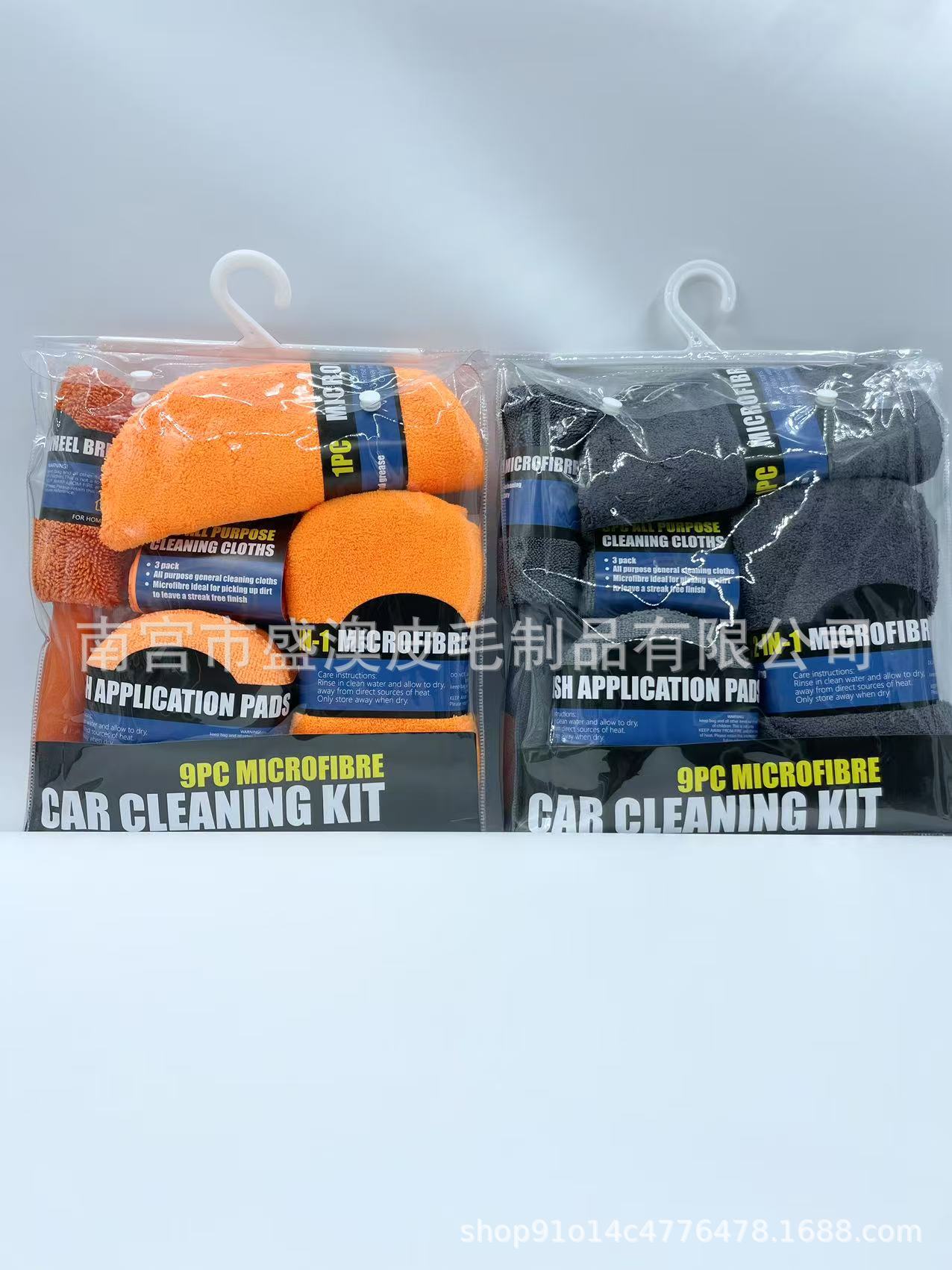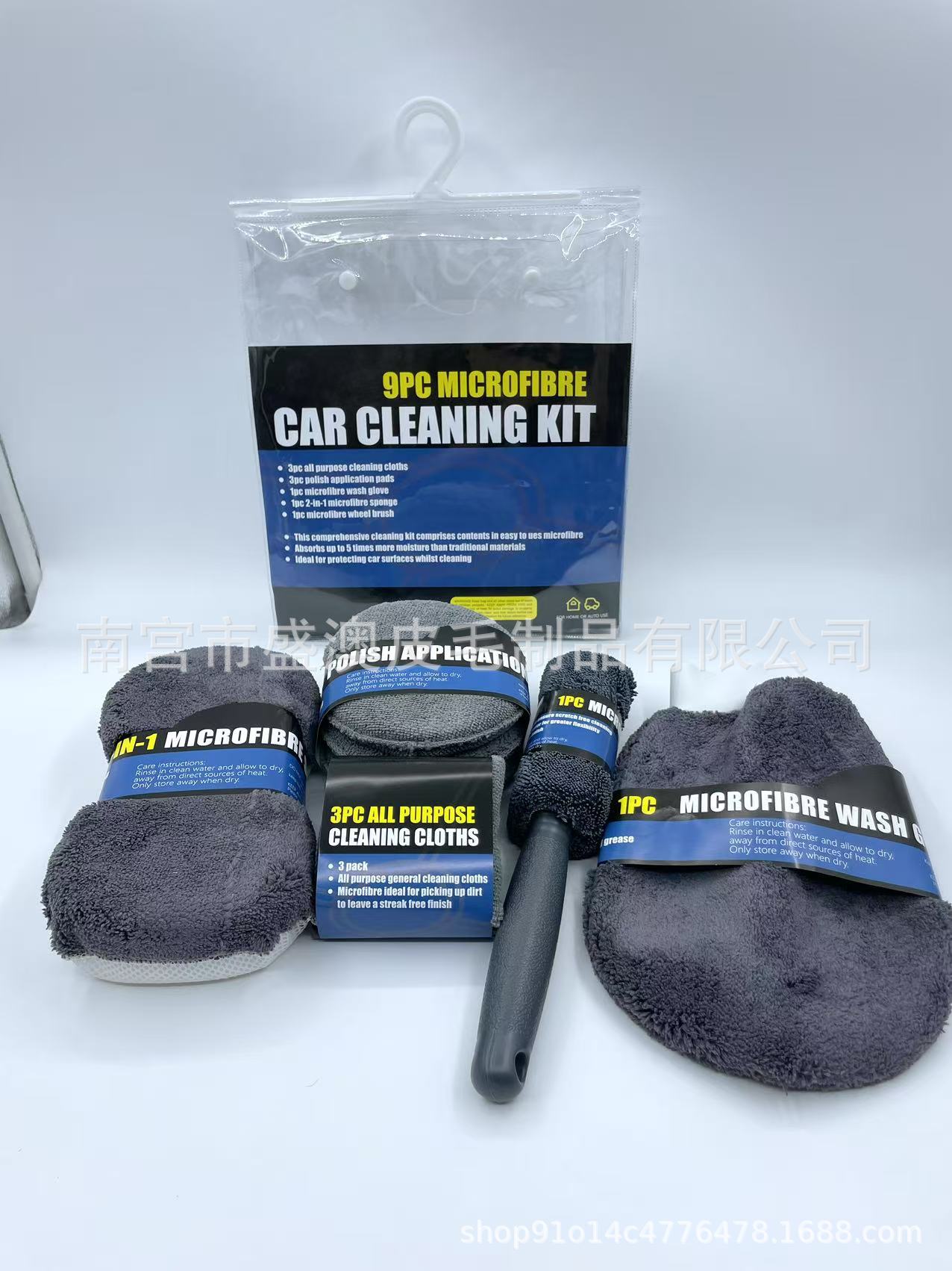 세차 9종세트, 자동차 미용 청소 도구, 장갑, 자동차 닦는 수건, 걸레, 왁싱 스펀지, 휠 브러쉬