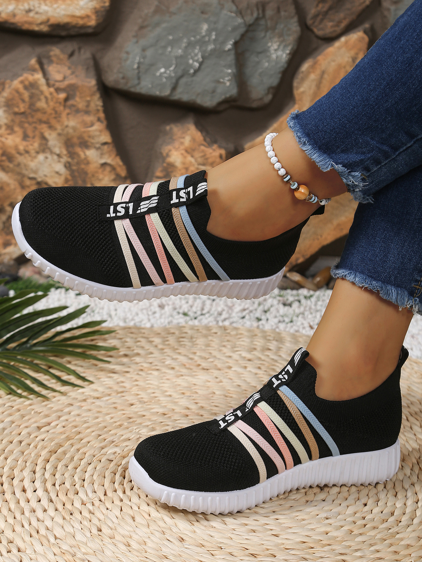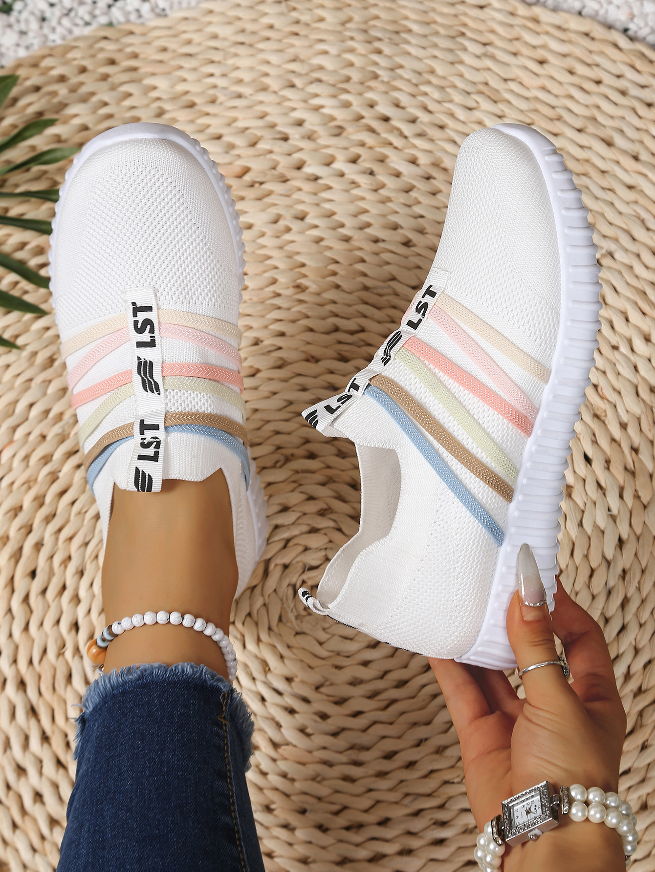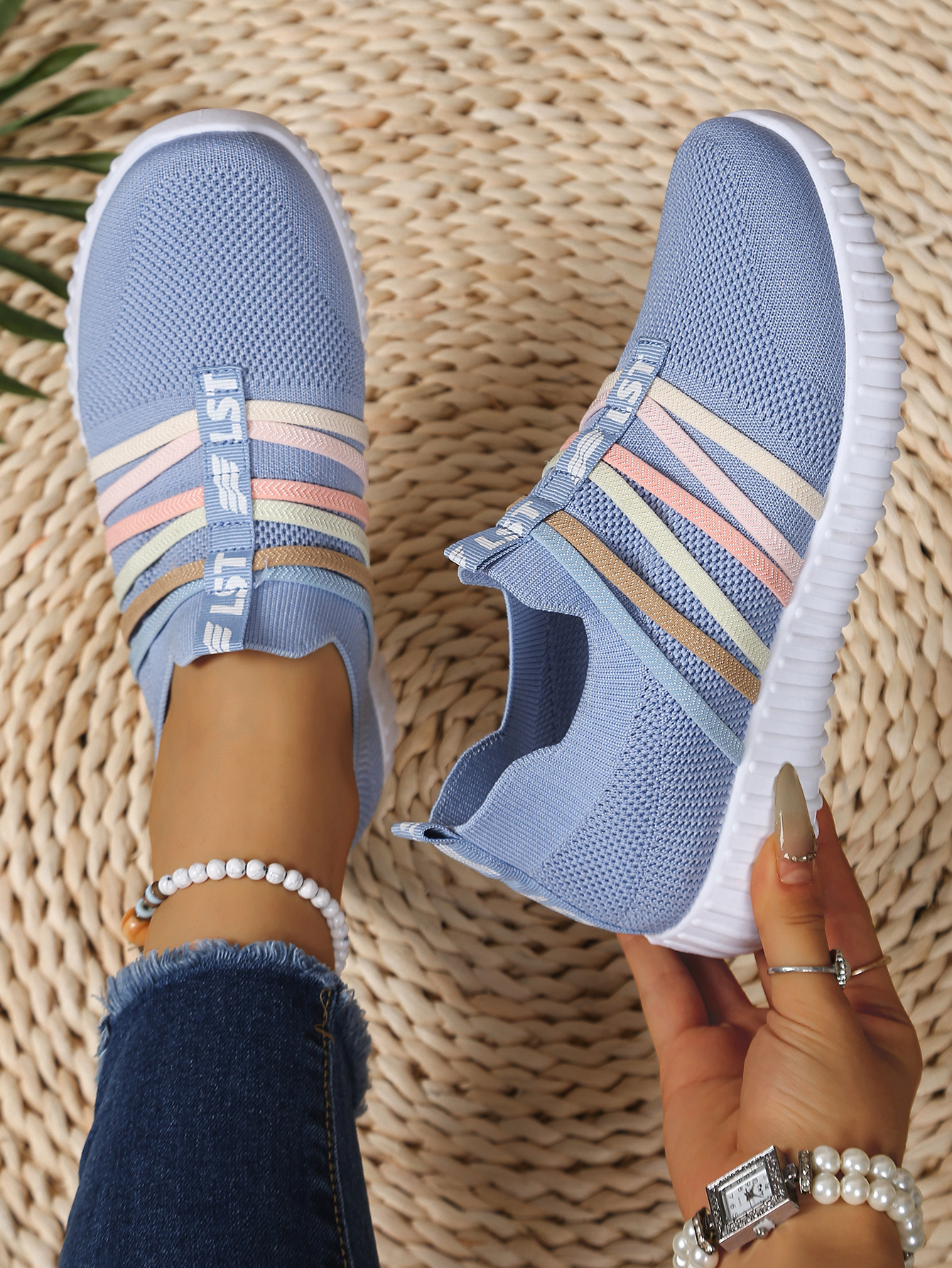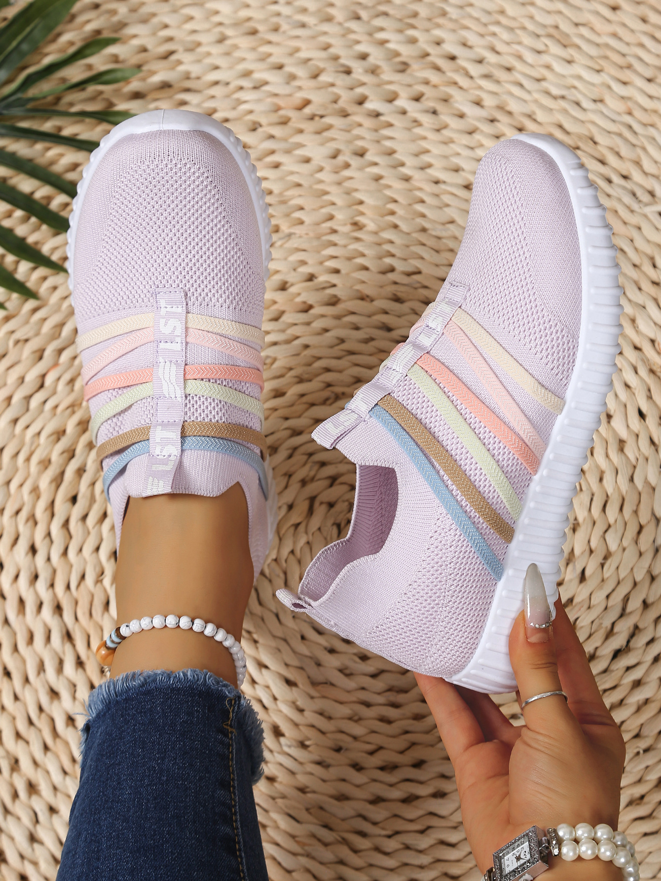 2025 여성 여름 새로운 플라이 짠 신발 레인보우 신발 캐주얼 신발 경량 캐주얼 슬립 온 운동화 국경 간 도매스토어 가기