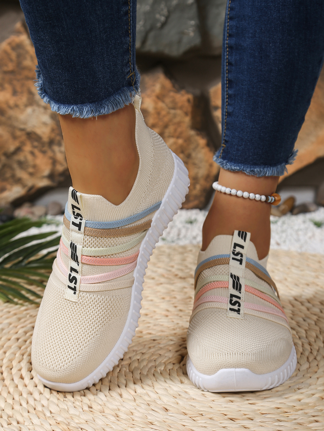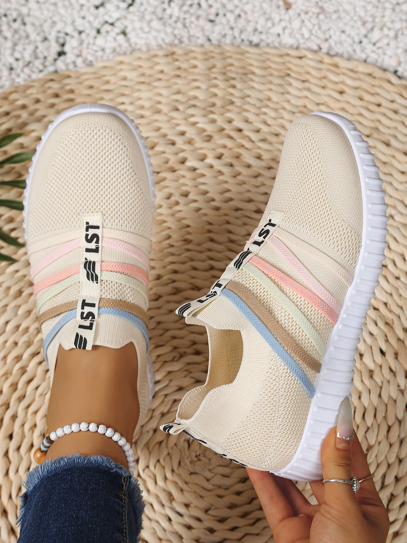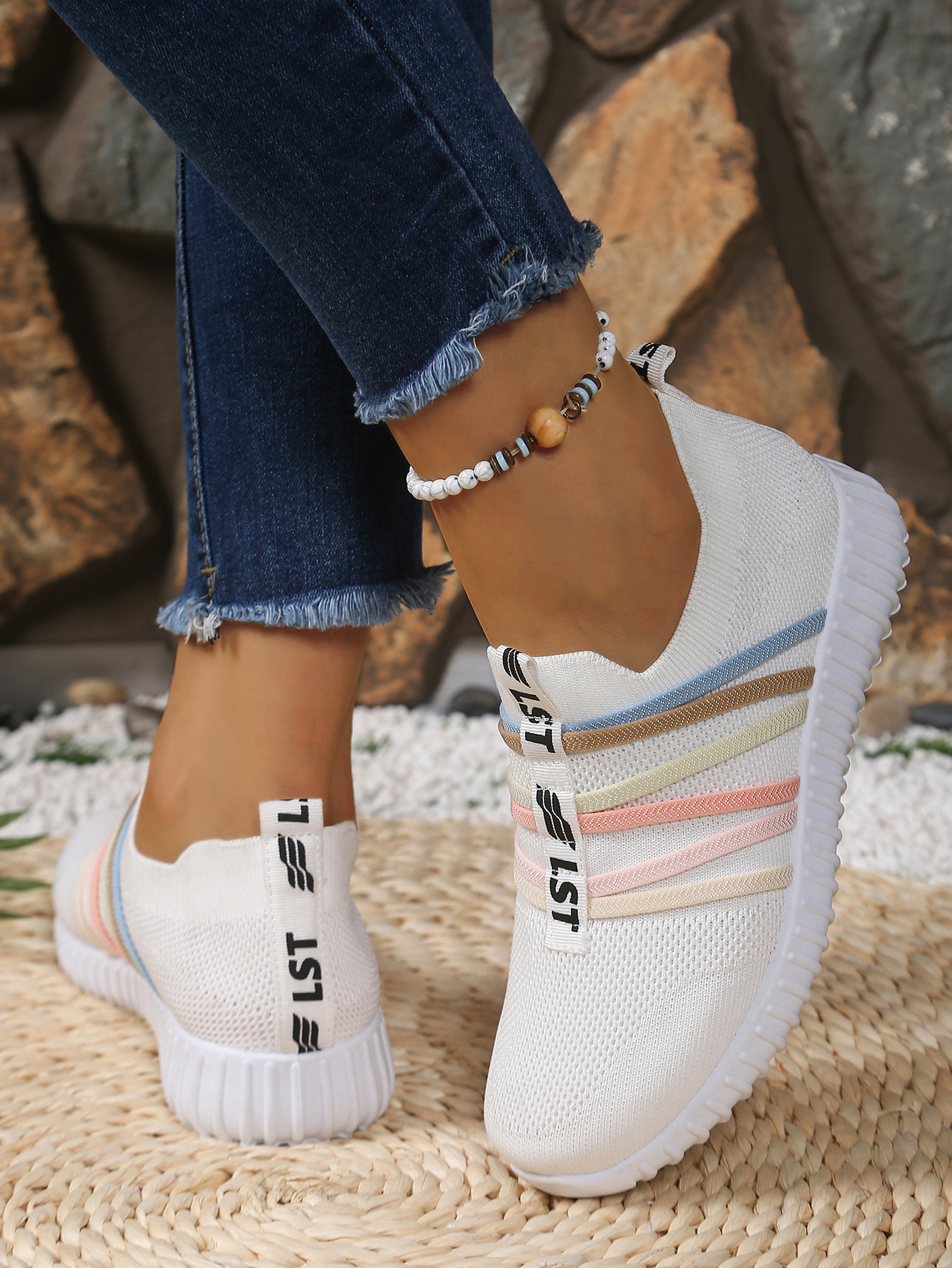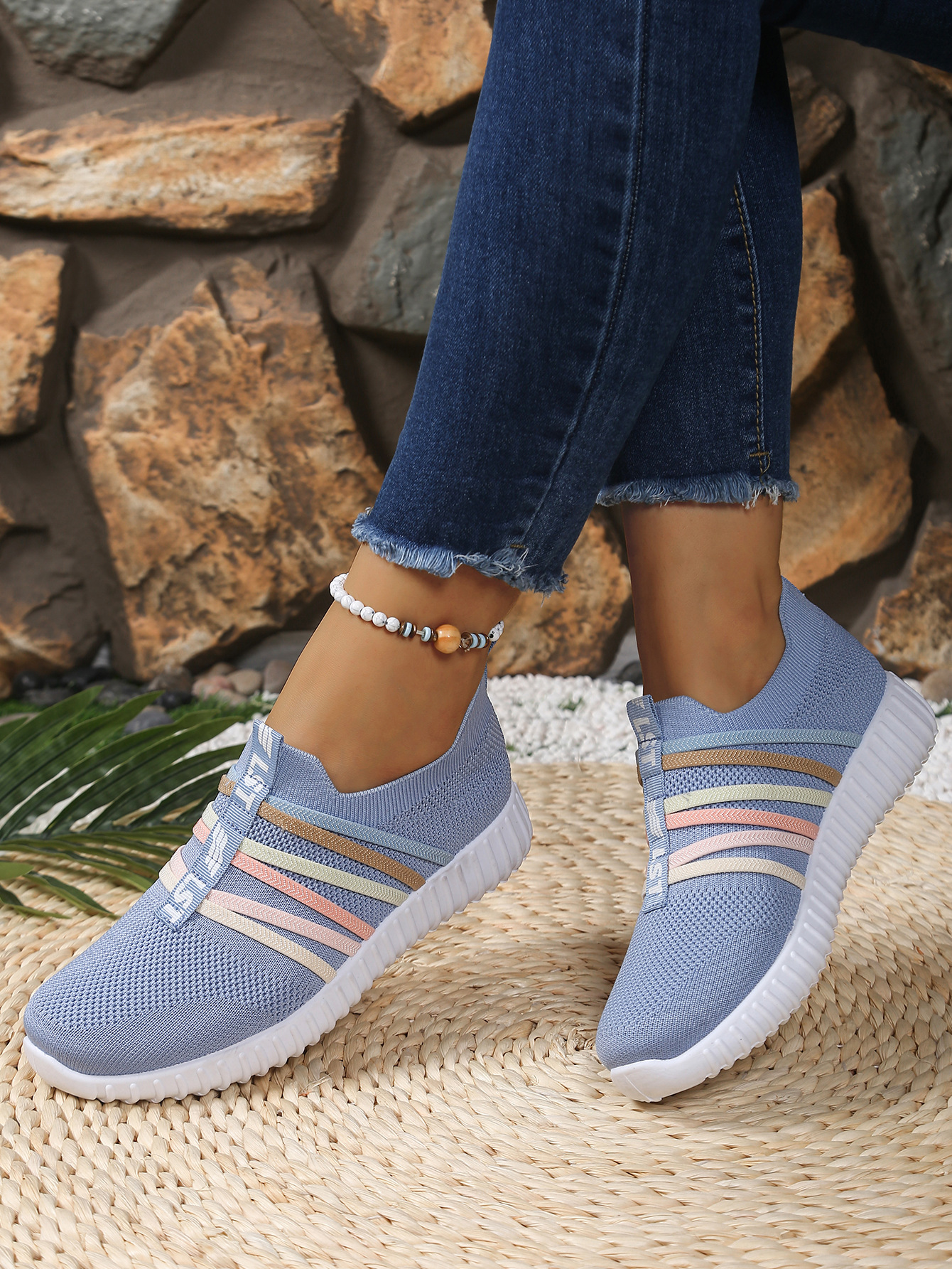 2025 여성 여름 새로운 플라이 짠 신발 레인보우 신발 캐주얼 신발 경량 캐주얼 슬립 온 운동화 국경 간 도매스토어 가기