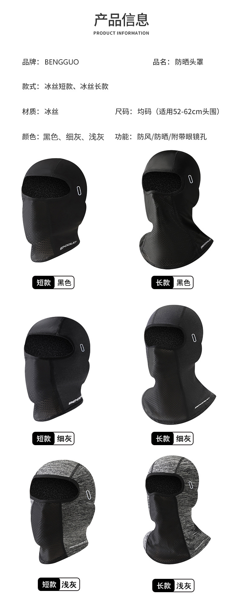 Bingguo 오토바이 타기 여름 얼음 실크 터번 태양 보호 후드 풀 페이스 마스크 봄과 여름 야외 태양 보호 스카프