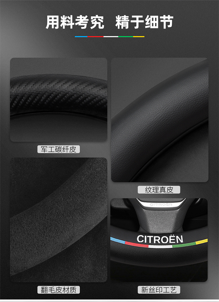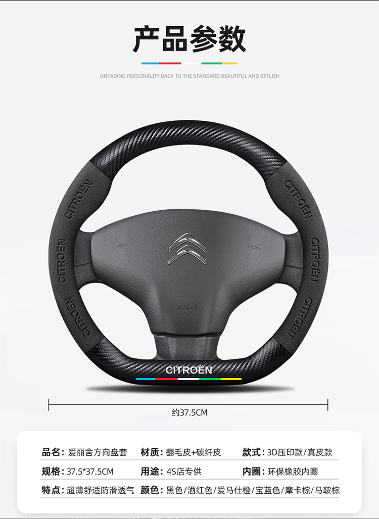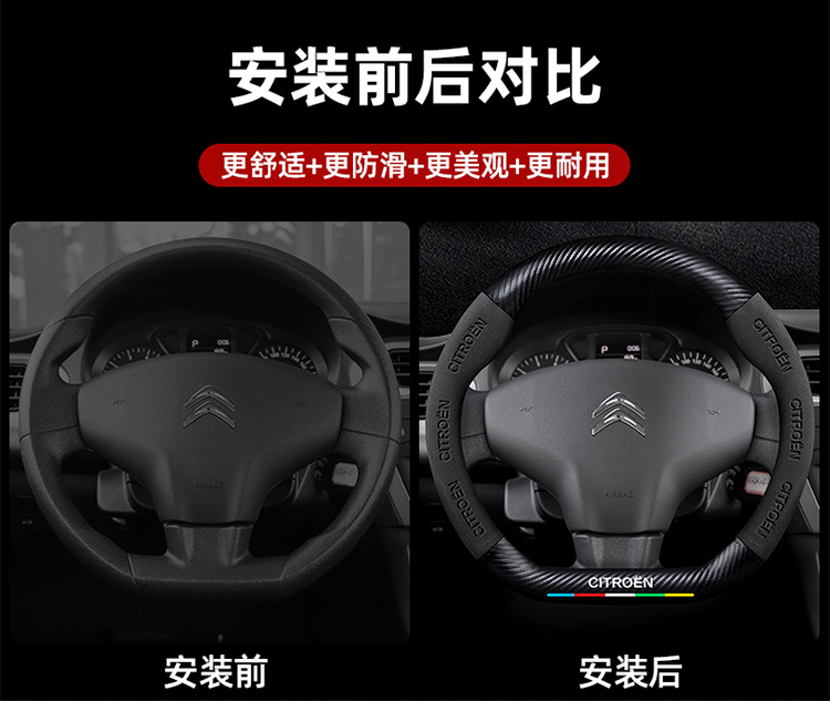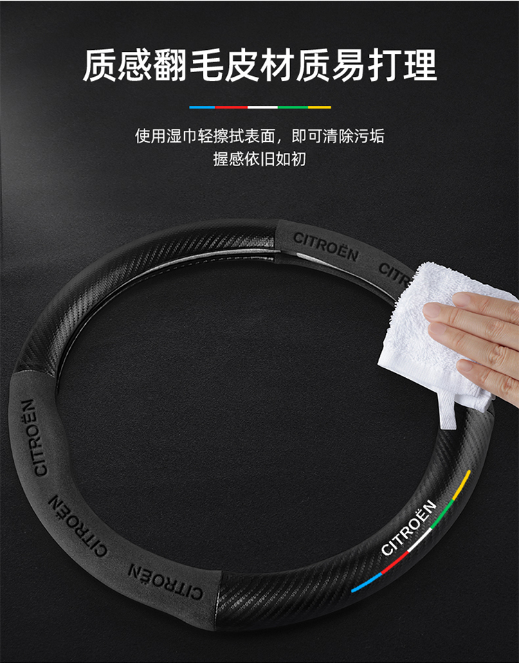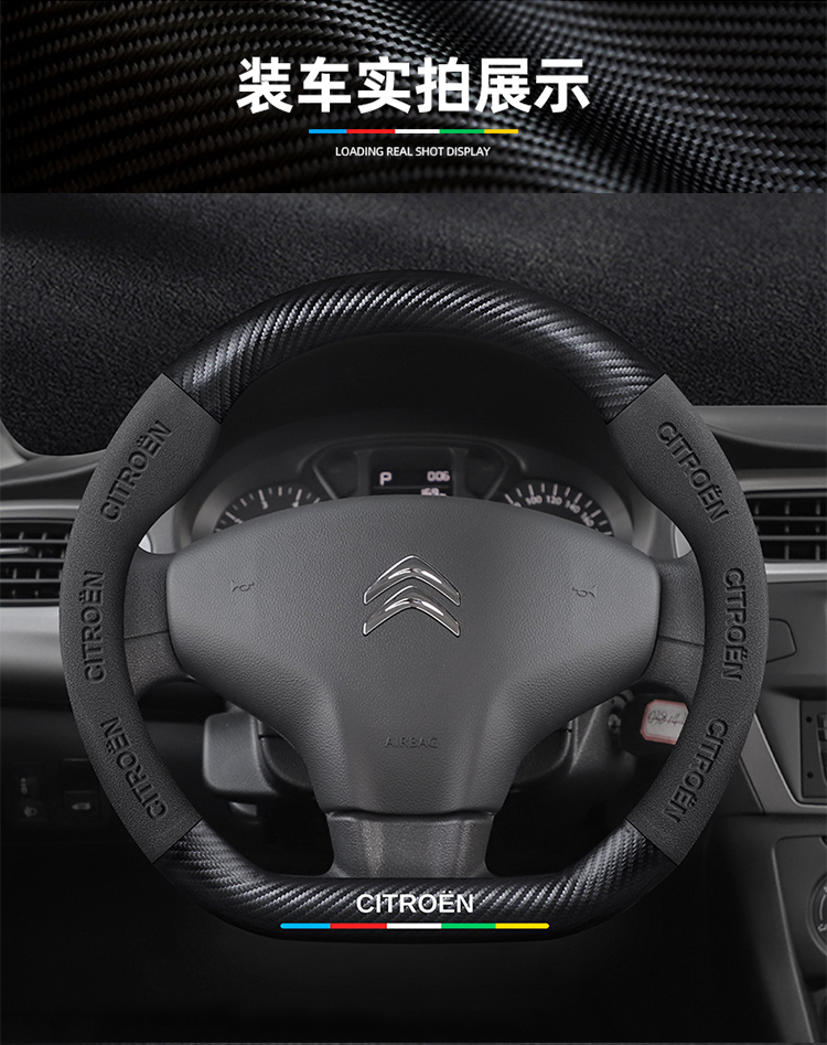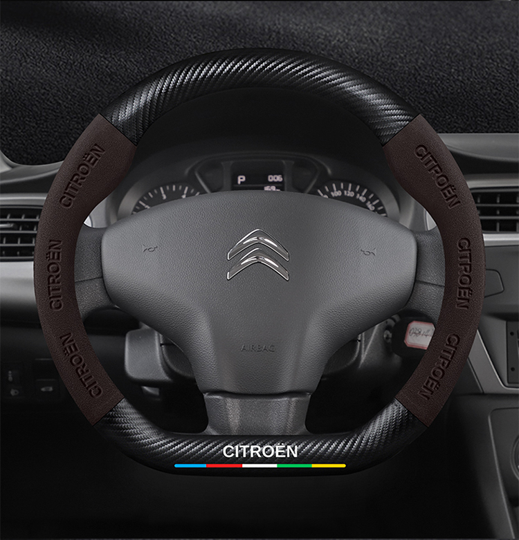 시트로엥 엘리제 스티어링 휠 커버 05-19 탄소 섬유 미끄럼 방지 초박형 가죽 스웨이드 자동차 핸들 커버스토어 가기