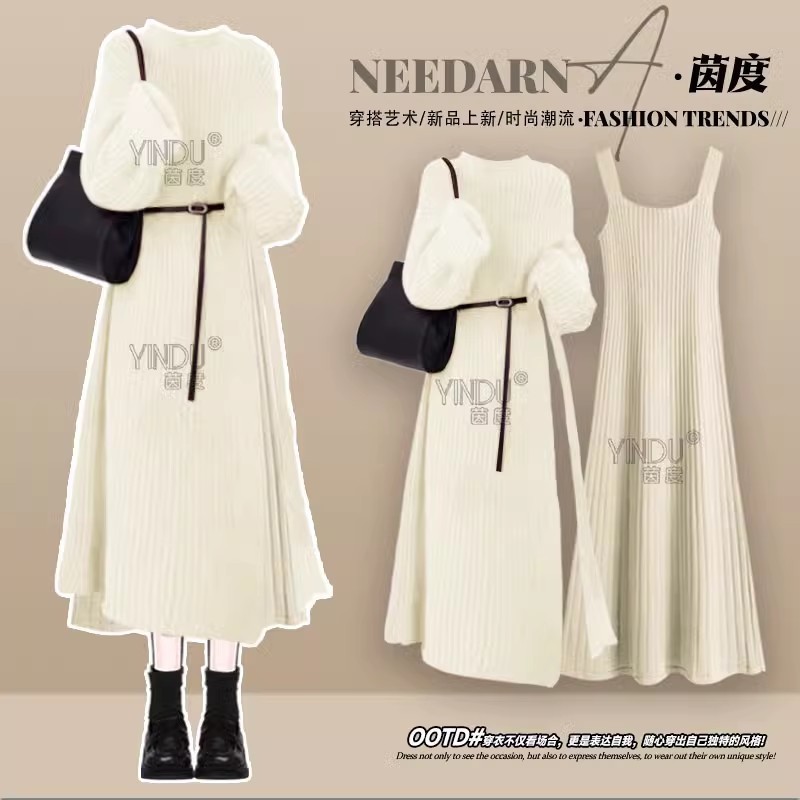 여성을 위한 새해 새 옷, 새로운 겨울 분위기의 니트 스웨터 드레스, 캐주얼 슬리밍 다용도 드레스 투피스 슈트