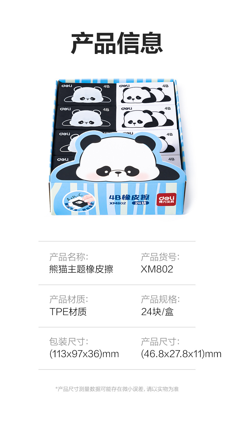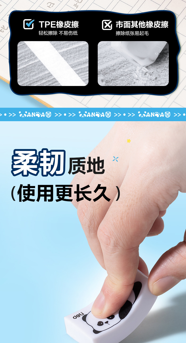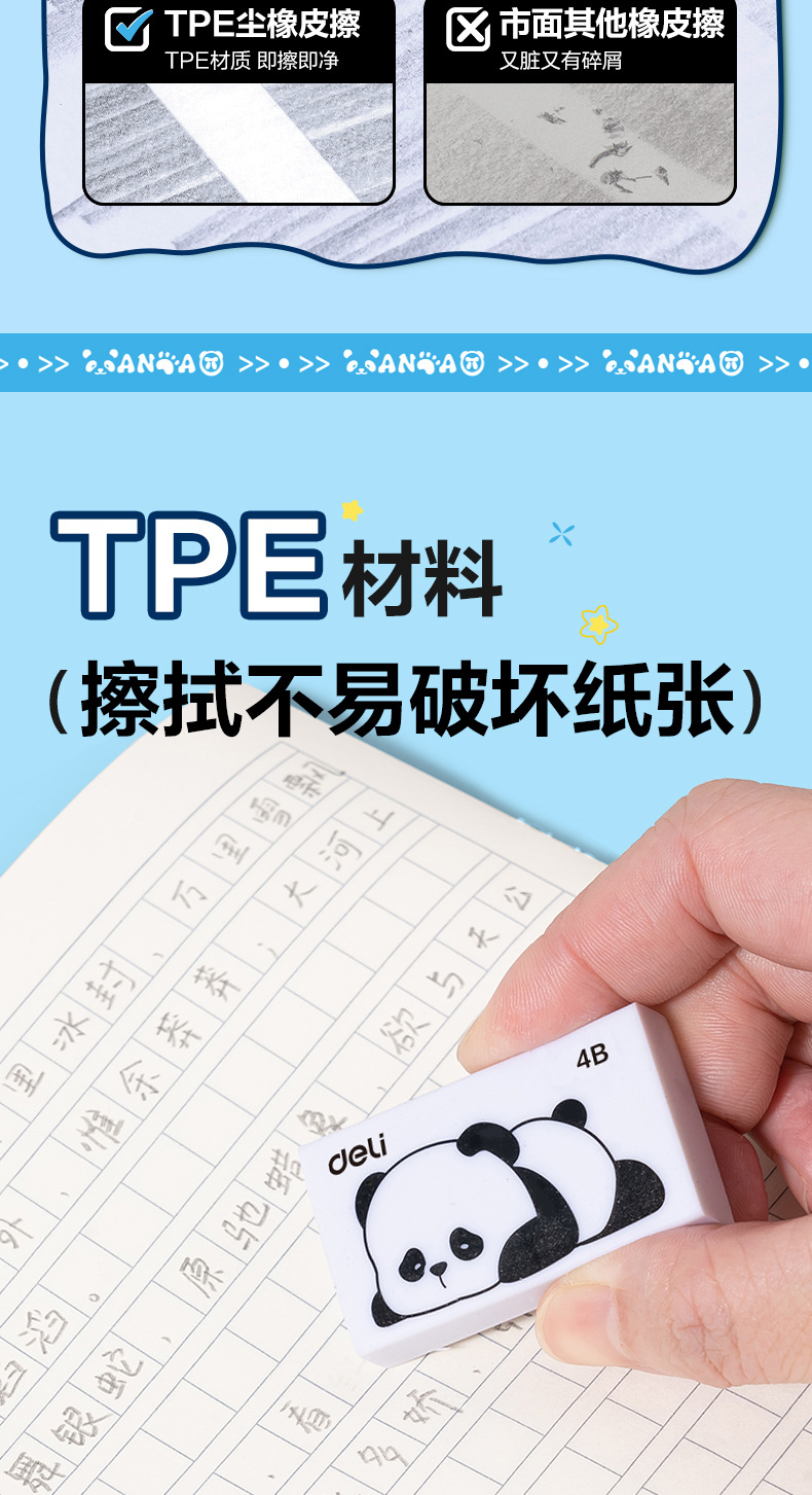 초등학생을 위한 델리 팬더 지우개, 부스러기 없이 깨끗함, 4B 창작 만화, 귀여운 유치원 어린이를 위한 특별스토어 가기