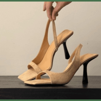 프렌치 스타일의 고급스러운 느낌! 스커트와 얇은 굽, 뒷끈이 있는 여성용 발이 피곤하지 않은 샌들, 블랙 하이힐, 활용도 높음스토어 가기