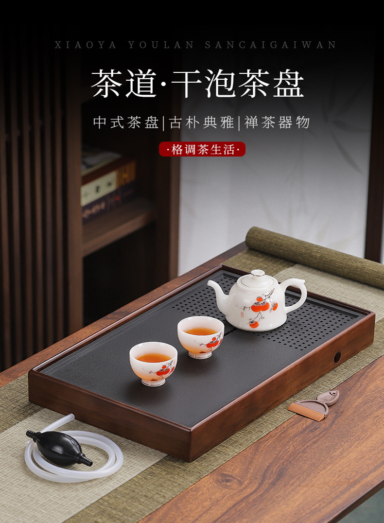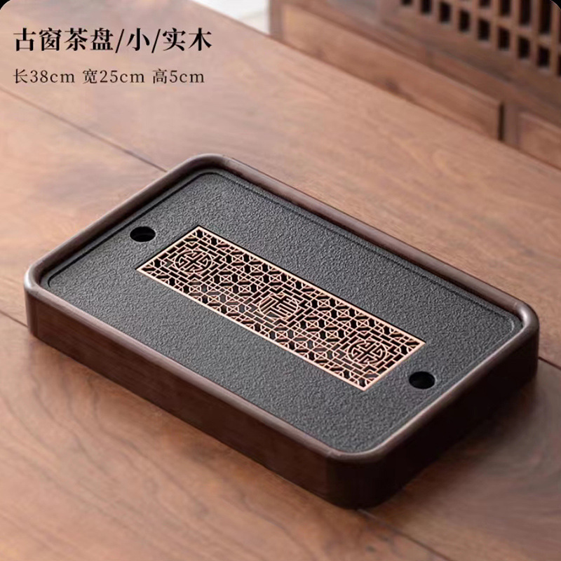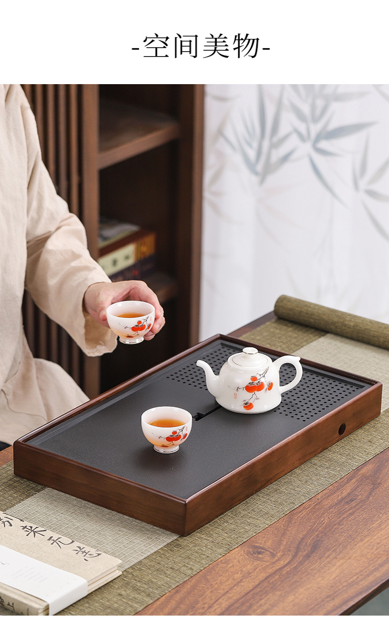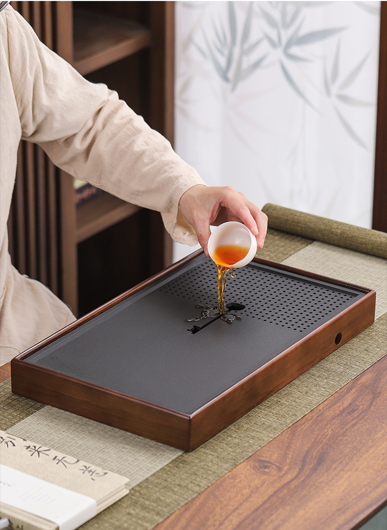 단단한 나무 흑금 도자기 차 트레이, 가정용 차 세트, 쿵푸 차 트레이, 접대 및 보관 겸용 건식 차 트레이, 차 컵 트레이