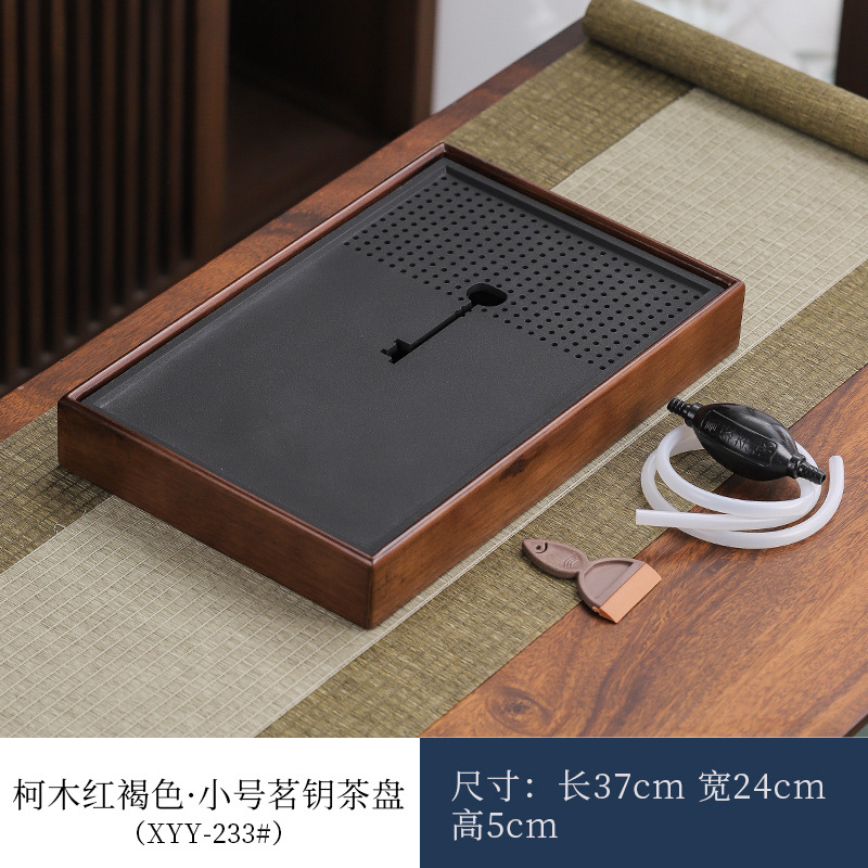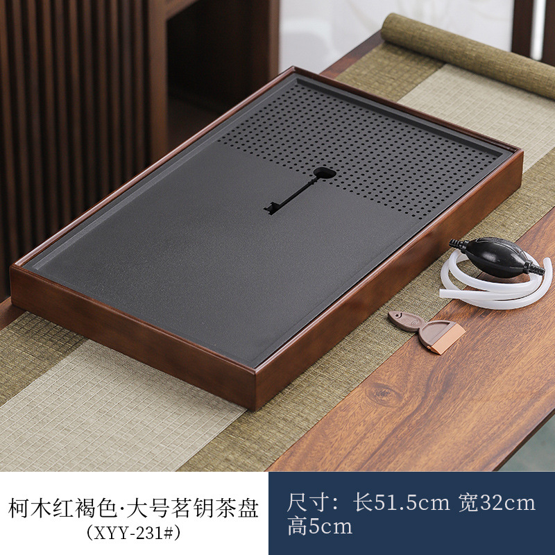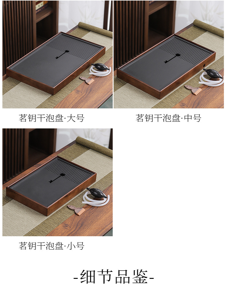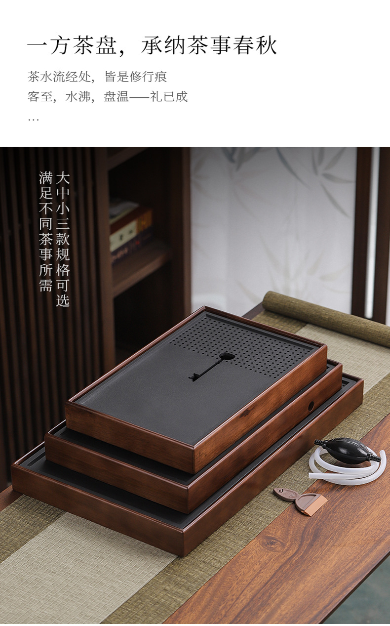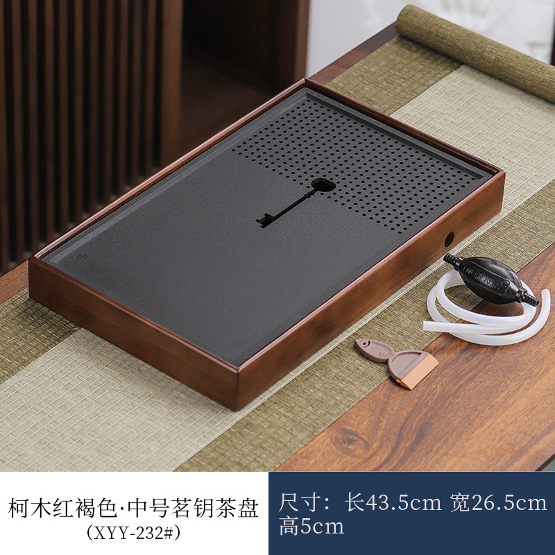 단단한 나무 흑금 도자기 차 트레이, 가정용 차 세트, 쿵푸 차 트레이, 접대 및 보관 겸용 건식 차 트레이, 차 컵 트레이