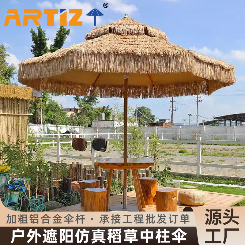 초록풀 야외 파라솔, 휴양지 해변 B&B 안뜰 우산, 상업용 매장 카페 시뮬레이션 밀짚 중심 우산
