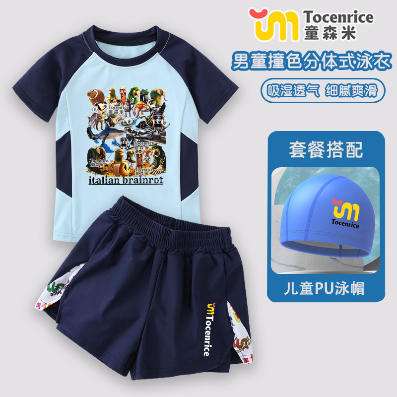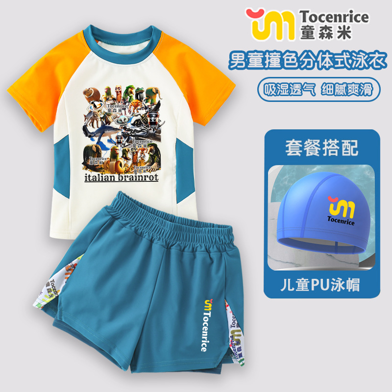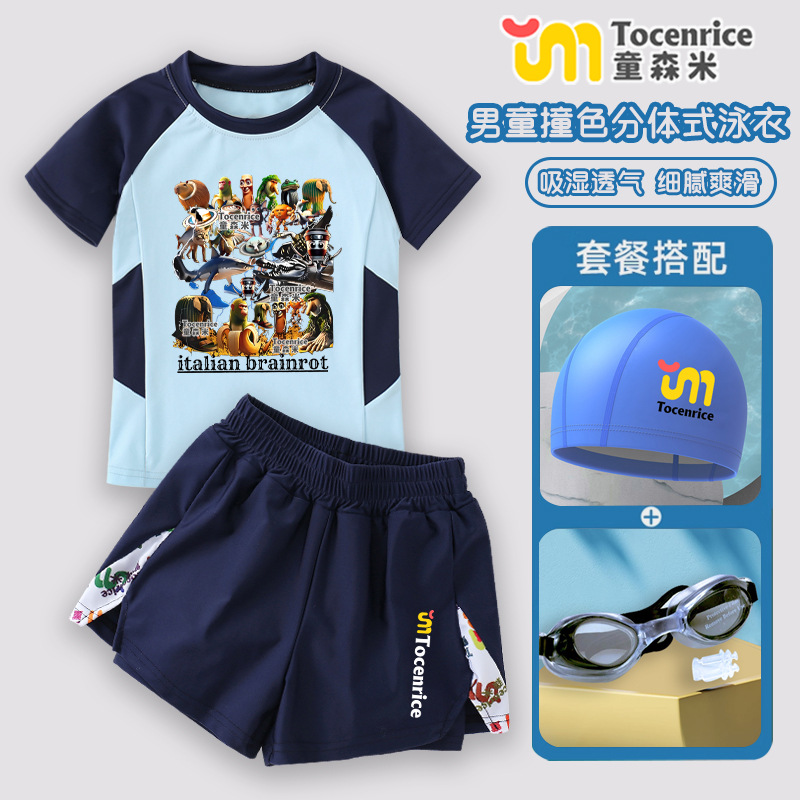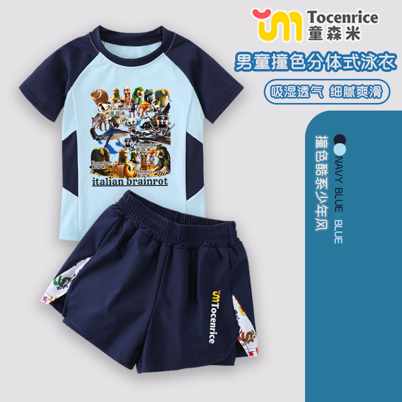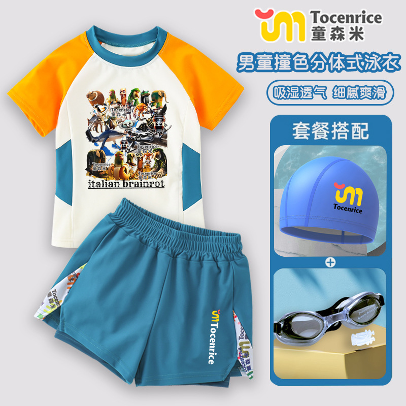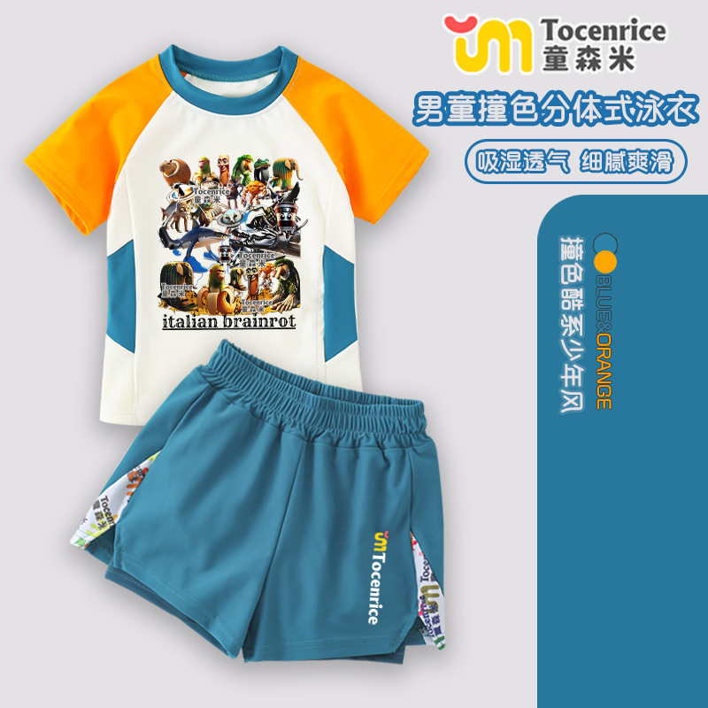 Tungtungsahur 외국 산과 바다 어린이 수영복 스플릿 소년 수영복 세트 6스토어 가기