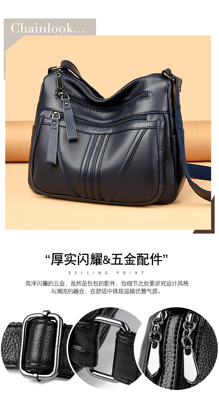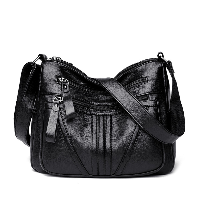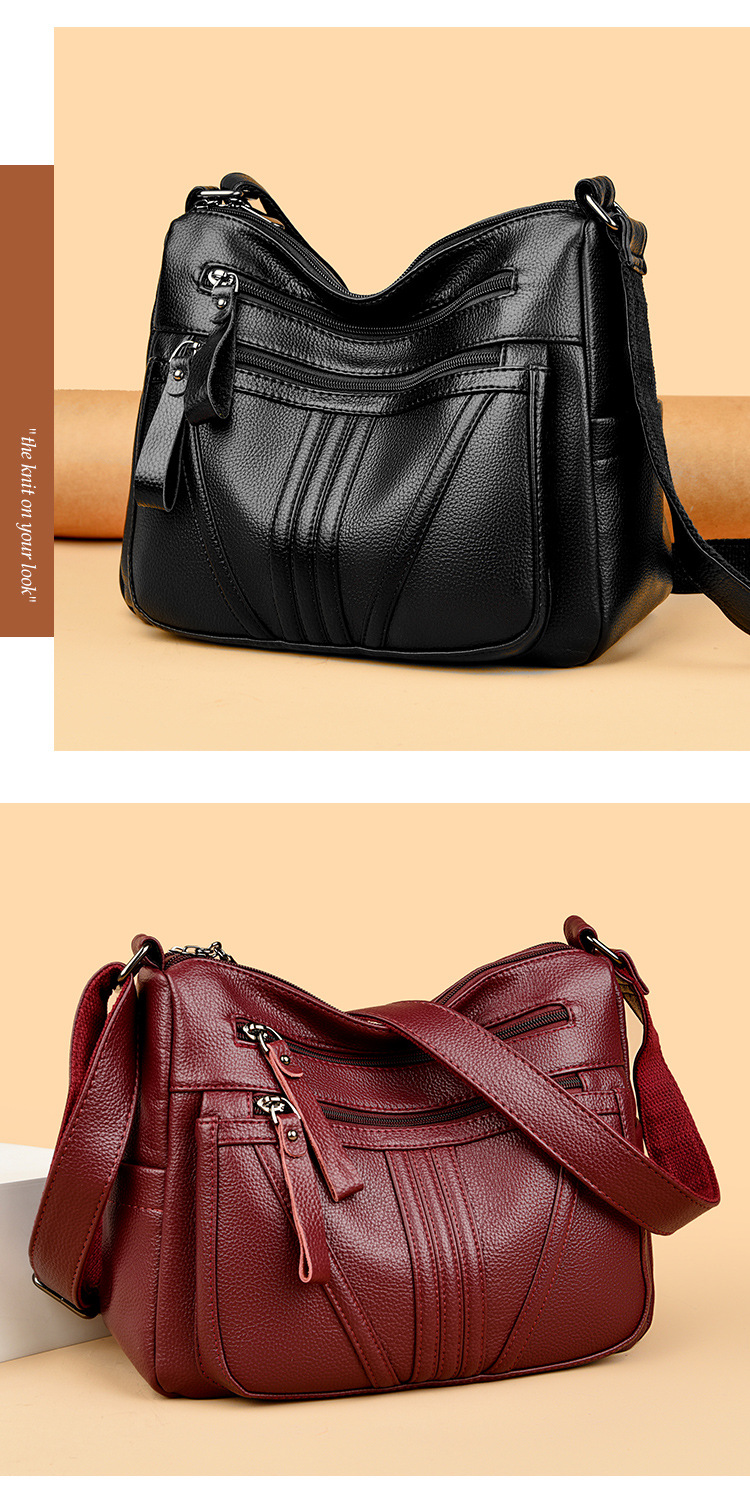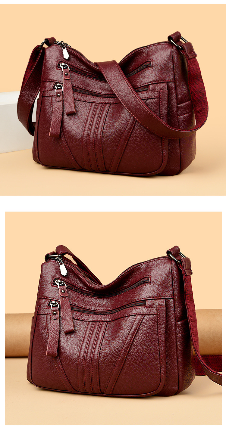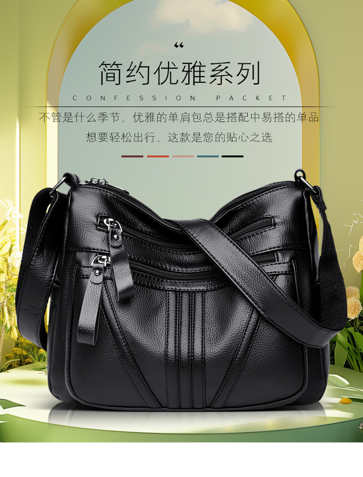 여성을위한 부드러운 가죽 가방 2024 새로운 패션 중년 및 노인 어머니 가방 대용량 멀티 포켓 캐주얼 어깨 크로스 바디 백
