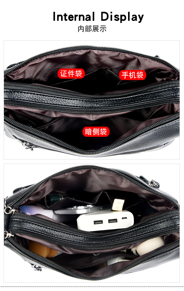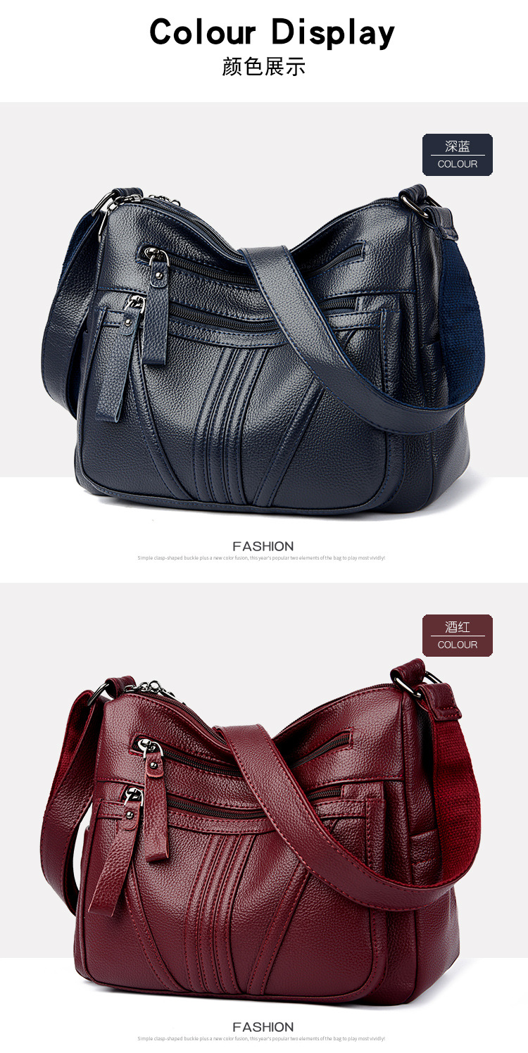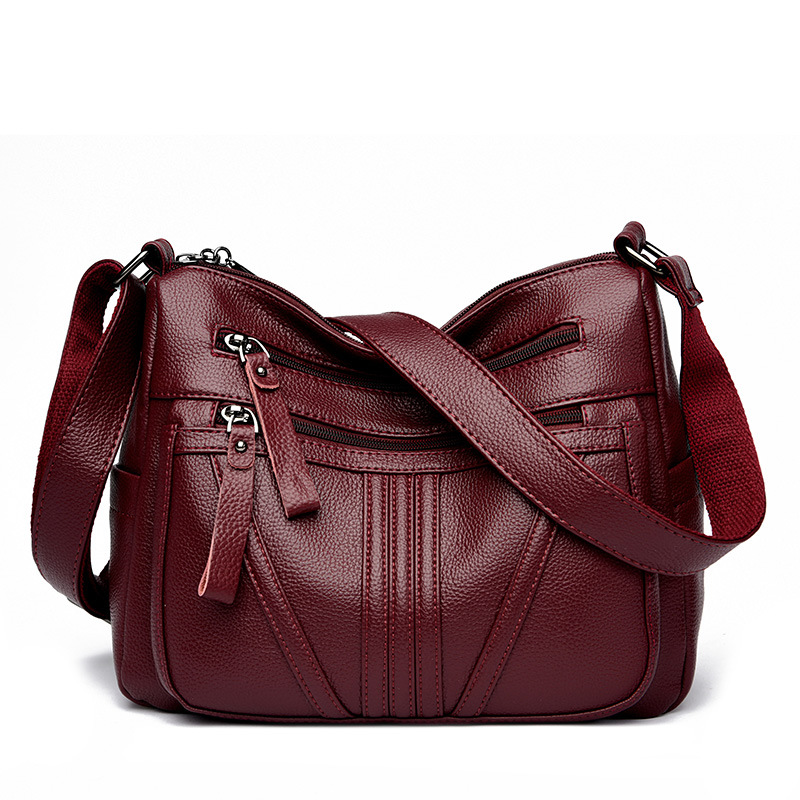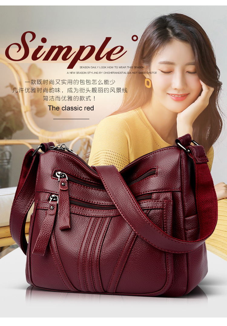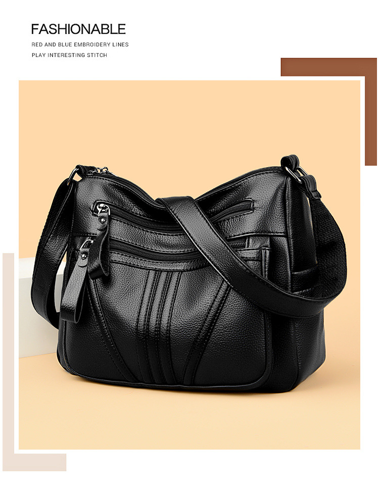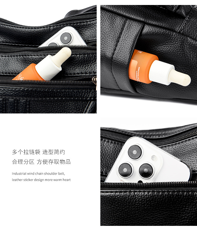 여성을위한 부드러운 가죽 가방 2024 새로운 패션 중년 및 노인 어머니 가방 대용량 멀티 포켓 캐주얼 어깨 크로스 바디 백