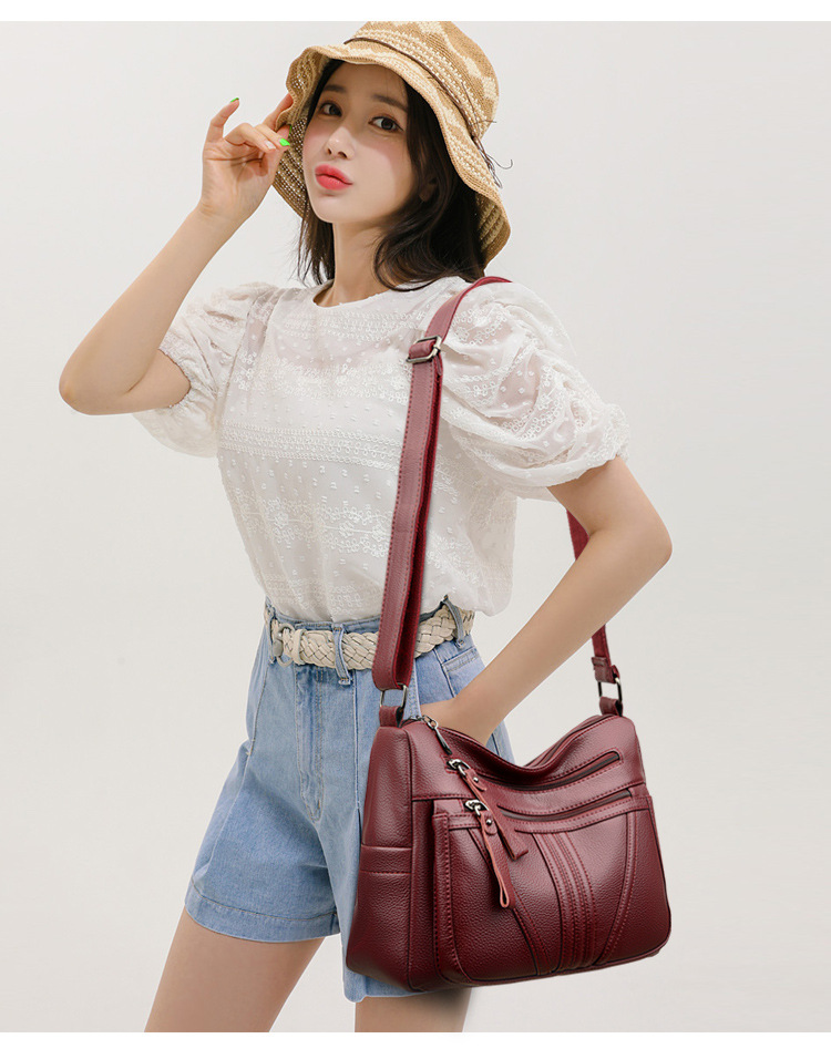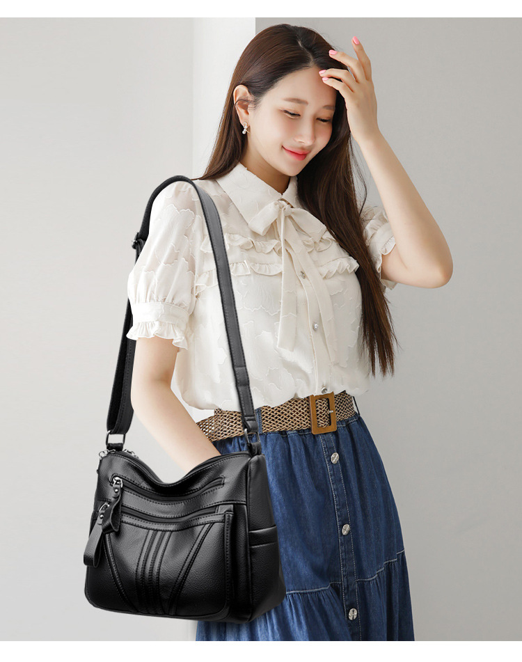 여성을위한 부드러운 가죽 가방 2024 새로운 패션 중년 및 노인 어머니 가방 대용량 멀티 포켓 캐주얼 어깨 크로스 바디 백스토어 가기