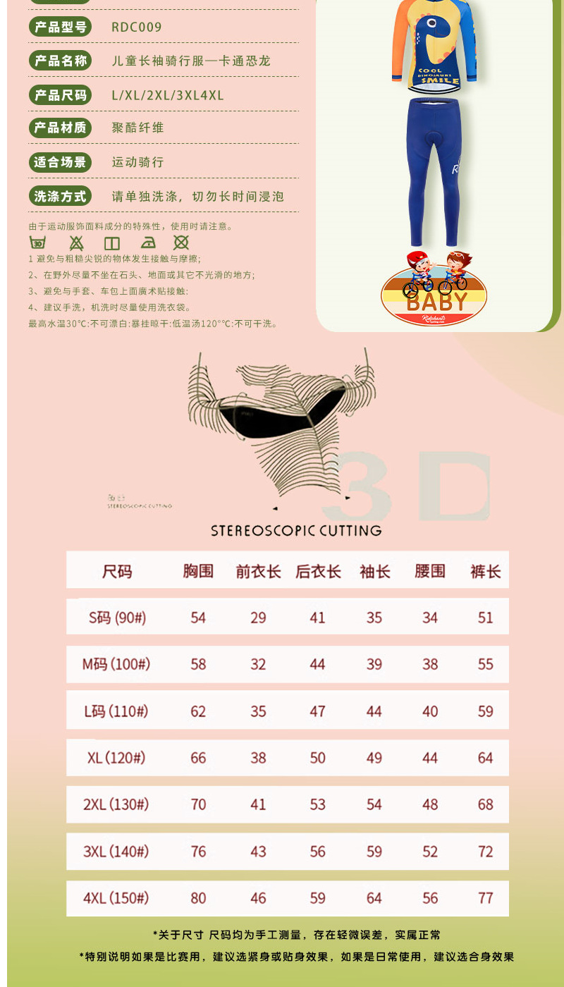 작은 공룡 어린이 사이클링 의류 짧은 긴팔 남성과 여성의 롤러 스케이트 균형 자전거 자전거 가을, 겨울 양털 레이싱 의류 아동 의류스토어 가기