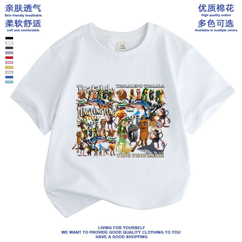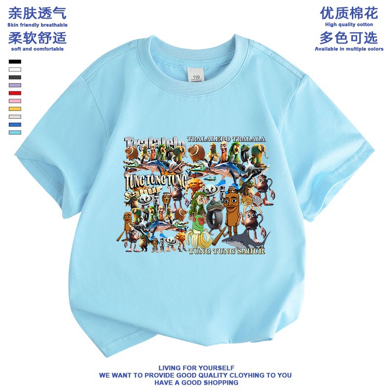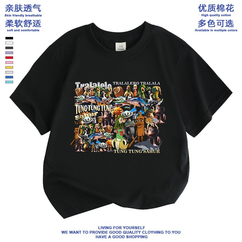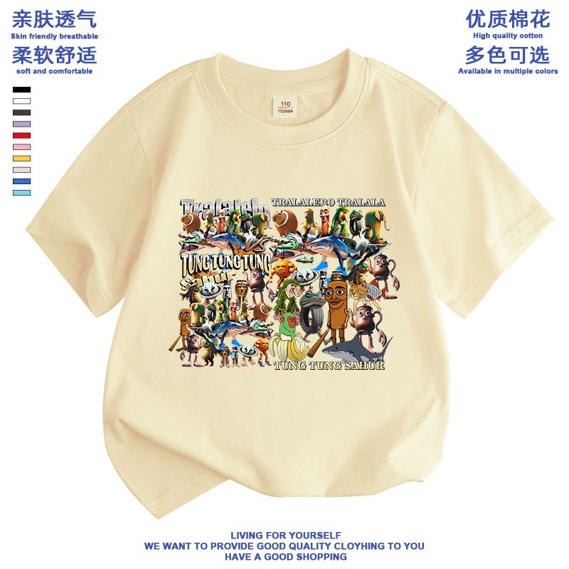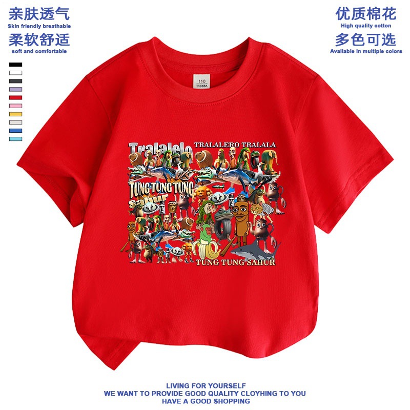 나무 스틱 렌통 형제 옷 반팔 티셔츠 어린이 여름 tungtungsahur Shanhaijing 옷 새로운 패션스토어 가기
