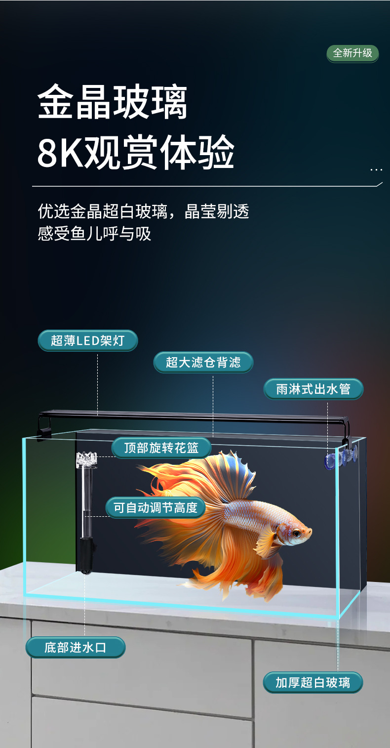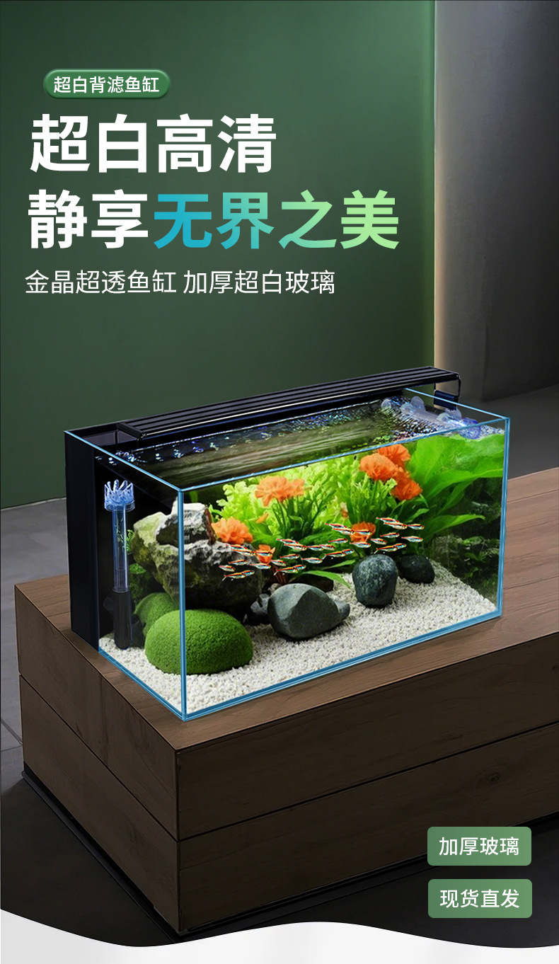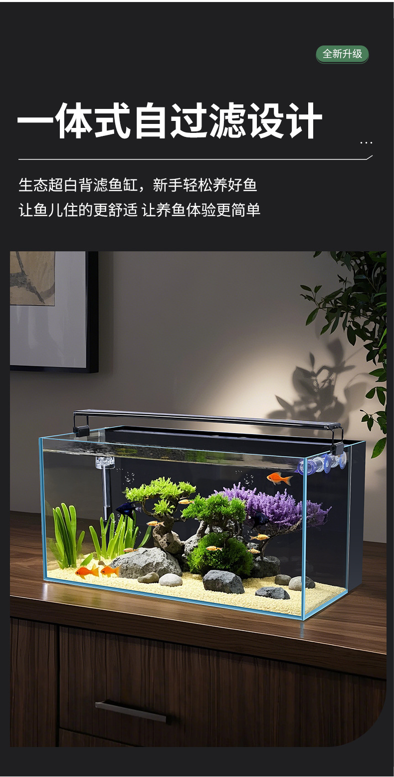 어항 필터가 내장된 어항, 거실 탁상용 필터 및 산소 공급 일체형 초백유리 금붕어 어항, 생태 조경 어항스토어 가기