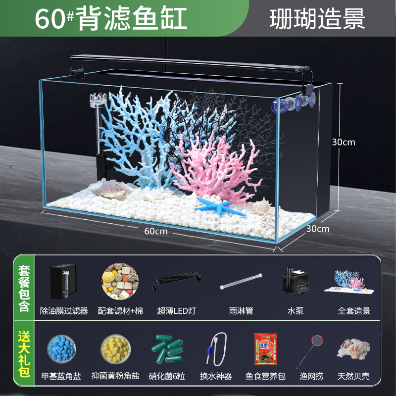 • 60 블랙 골드 백 필터 사이클론 버전 필터 재료 + 램프 + 펌프 + 선물 가방 + 산호 조경