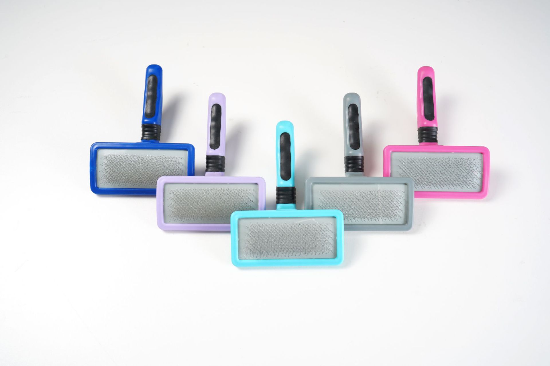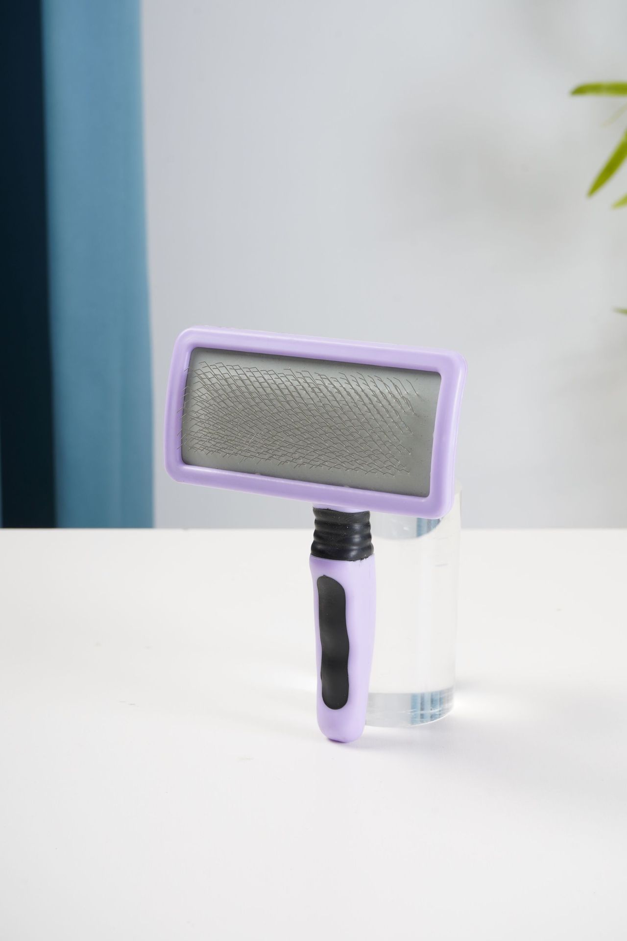 더블 퍼플 스타 개 미용사 고양이 풀 니들 빗 곡선형 소프트 및 하드 니들 브러시 플로팅 헤어 플라스틱 핸들 용품스토어 가기