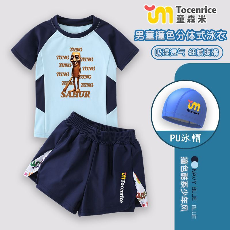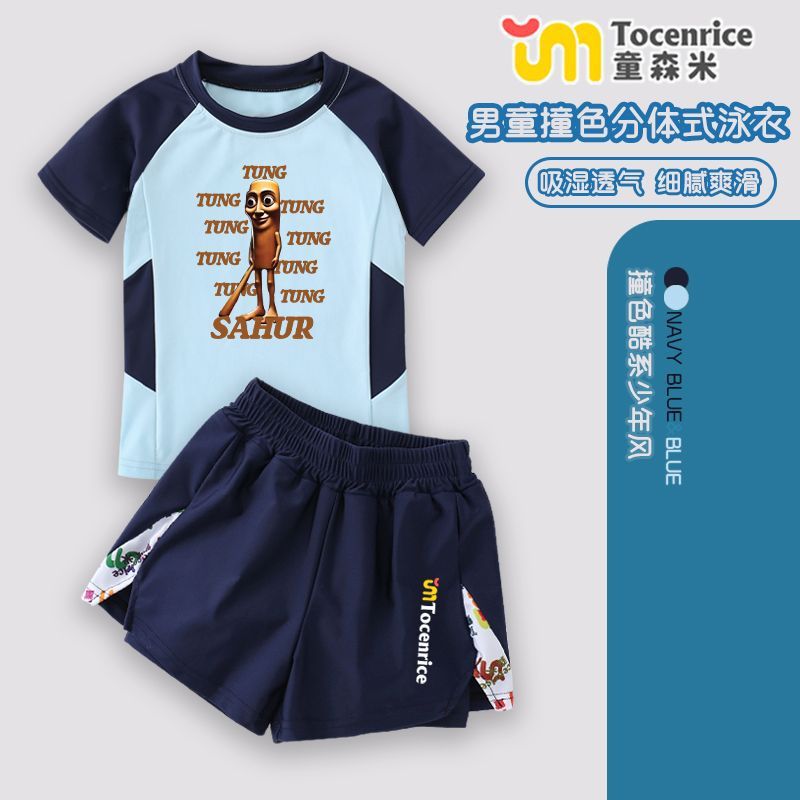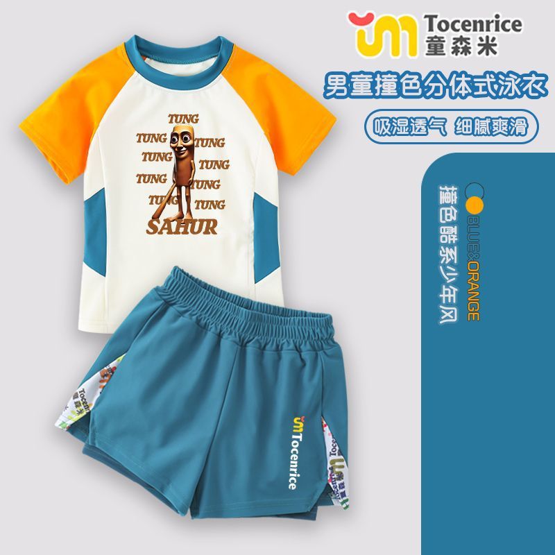 Tungtungsahur Tongtongge 나무 막대 어린이 소년 스플릿 자외선 차단 수영복 장비 수영 트렁크 세트스토어 가기