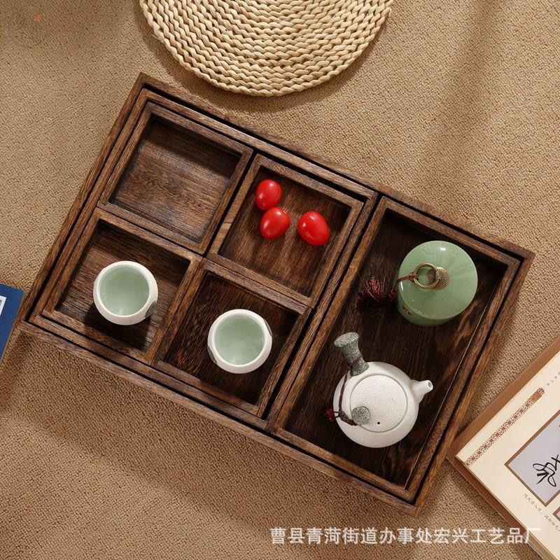 단단한 나무 말린 과일 트레이, 오동나무 복고풍 7피스 조합 차 트레이, 스낵 트레이, 난로 디스플레이 나무 트레이