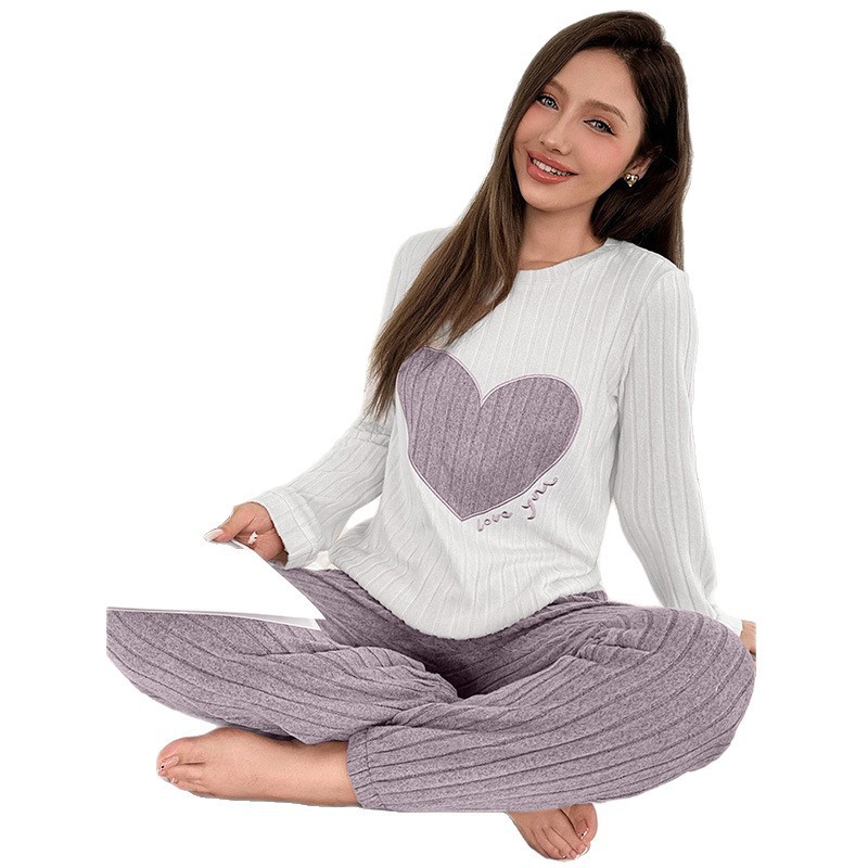 국경 간 사랑 패턴 컬러 블록 잠옷 여성 정장 봄과 가을 새로운 부드러운 긴팔 바지 홈웨어 투피스 세트스토어 가기