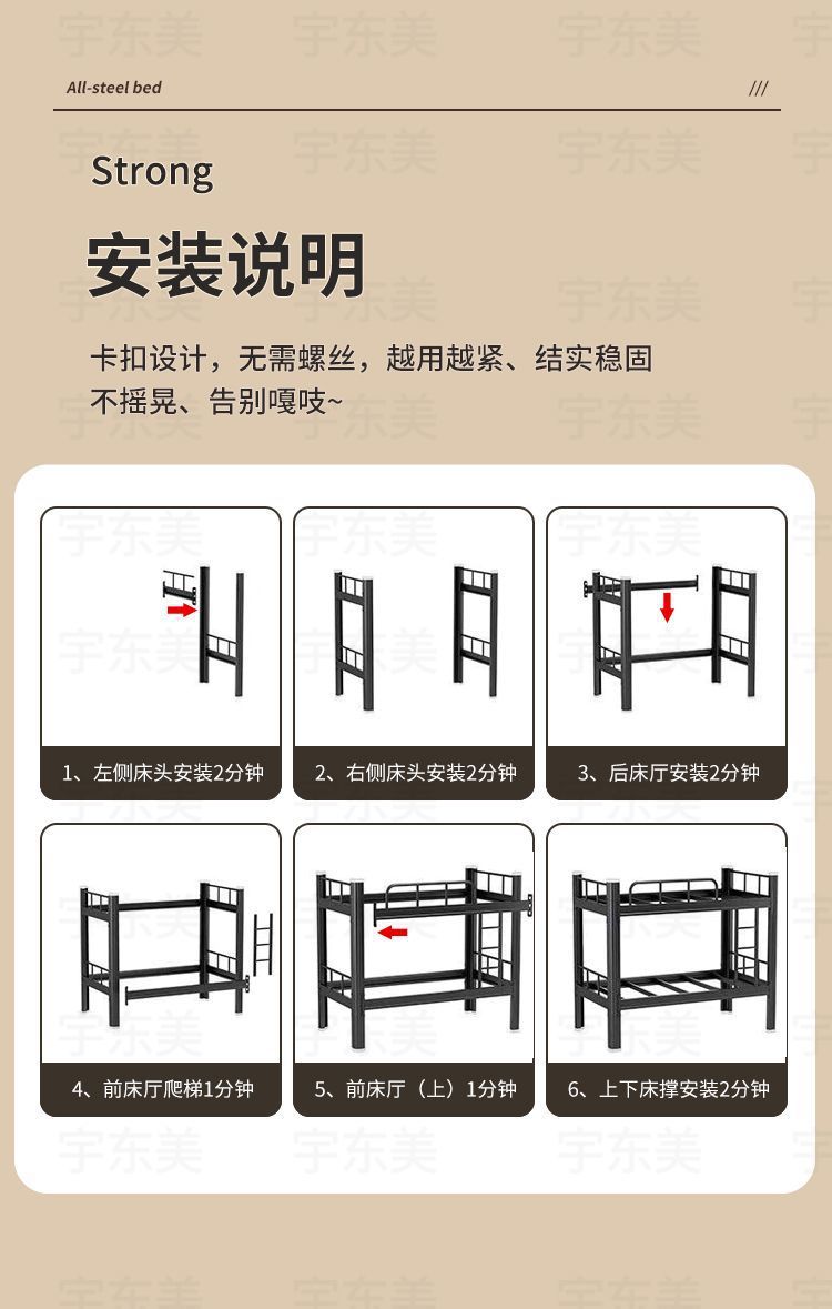 Yudongmei 폐쇄형 프로파일 침대 두꺼운 간단한 현대 기숙사 이층 철제 침대 학생 이층 높낮이 더블 침대스토어 가기